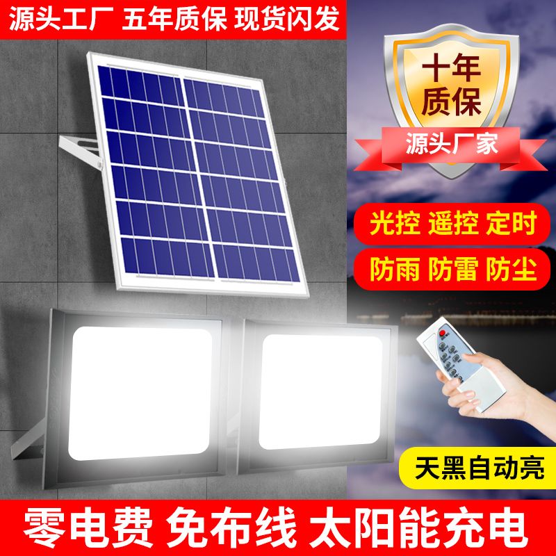 商品名称:太阳能灯家用户外防水超亮室内外大功率一拖二LED新农村投光路灯