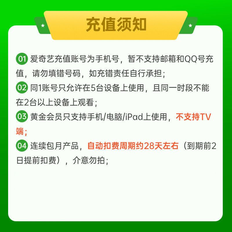 商品名称:爱奇艺会员年卡爱奇艺vip黄金会员12个月自动充值