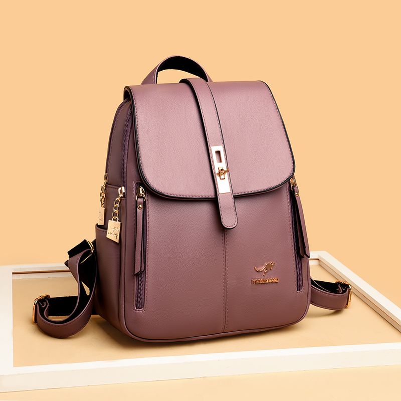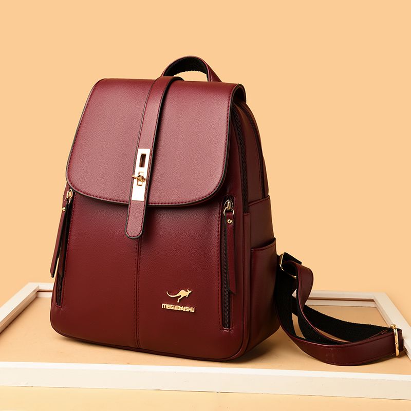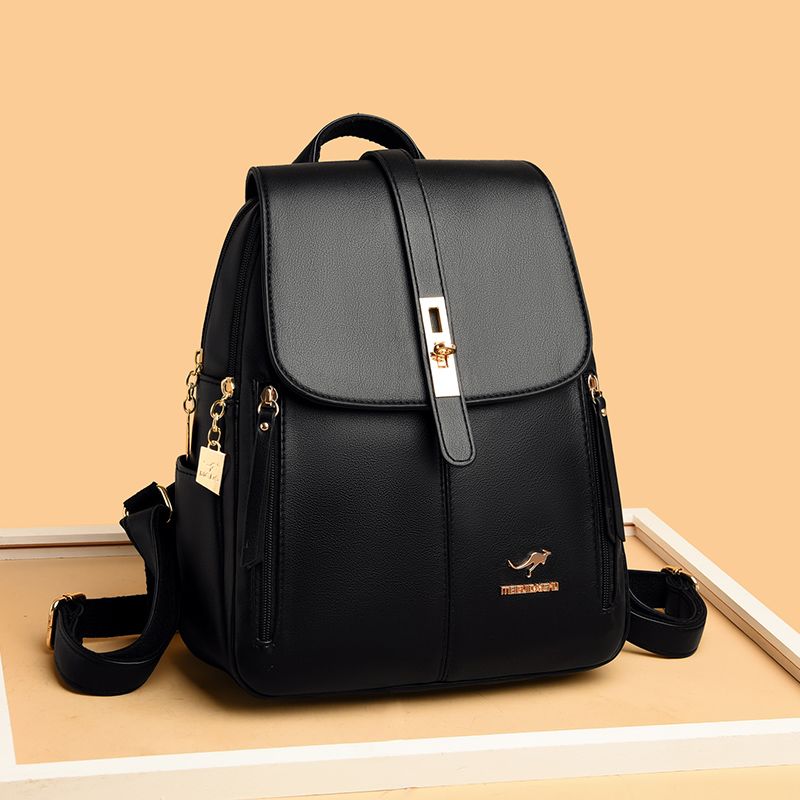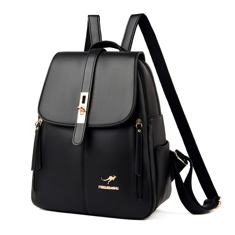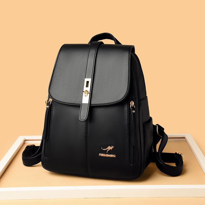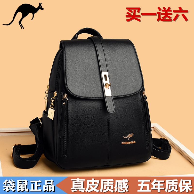 商品名称:袋鼠正品真皮质感背包女2021新款时尚百搭女双肩包大容量旅行包潮