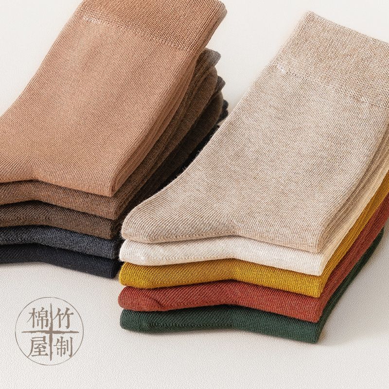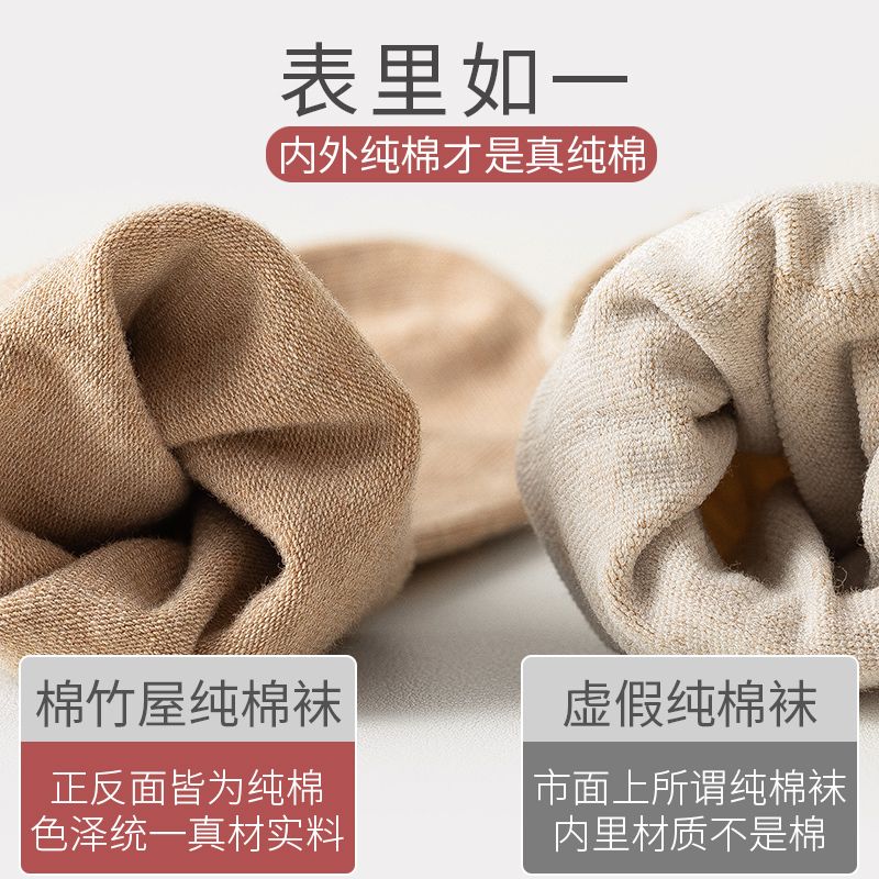 商品名称:棉竹屋袜子女中筒袜纯棉全棉纯色春秋黑色秋冬款长筒袜女士长袜