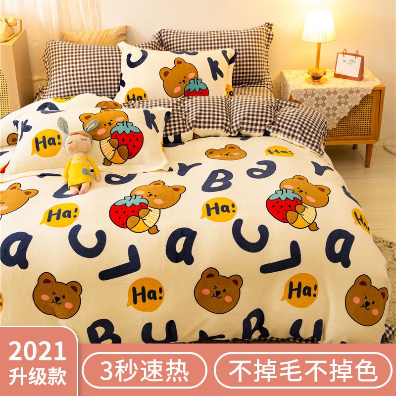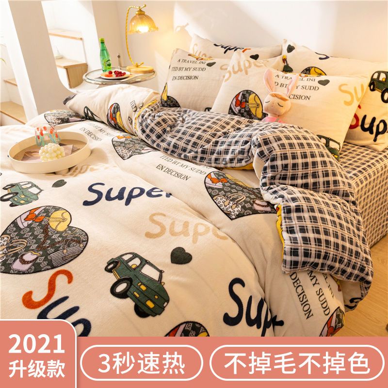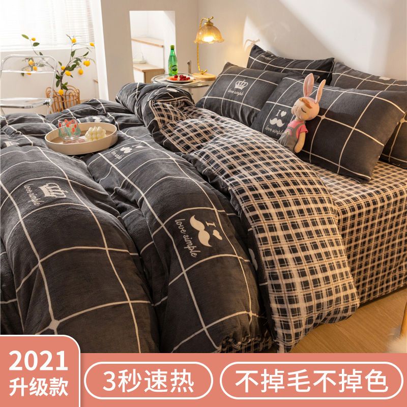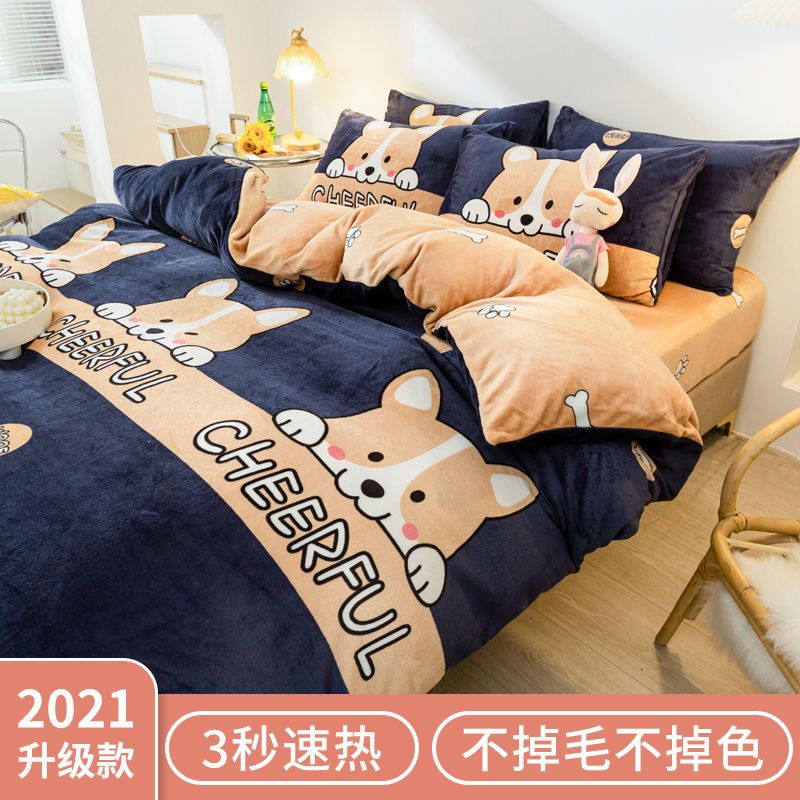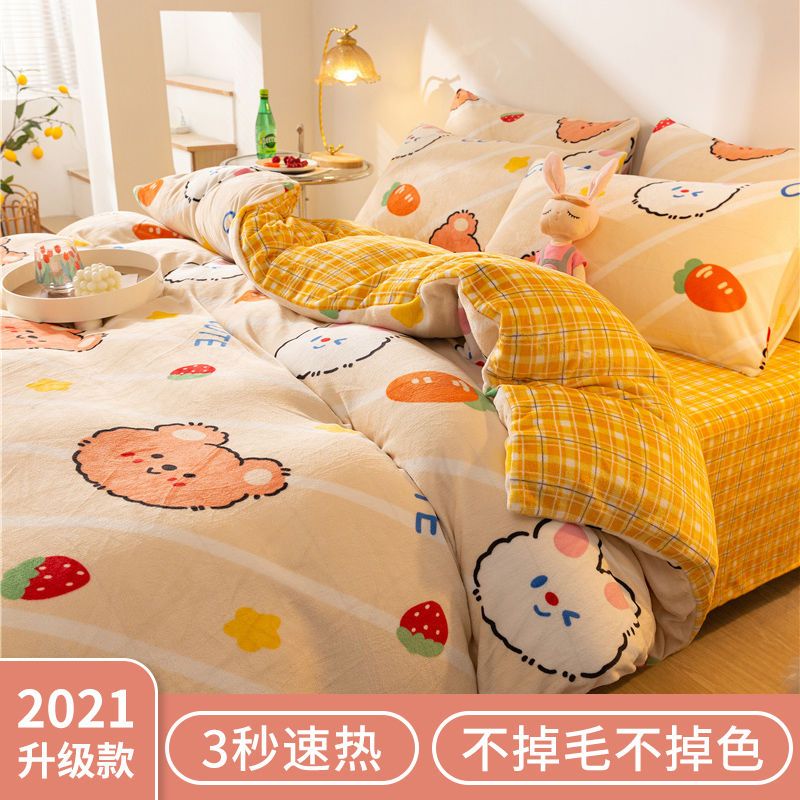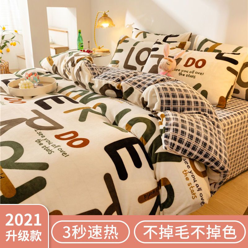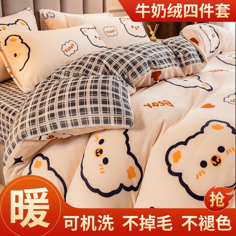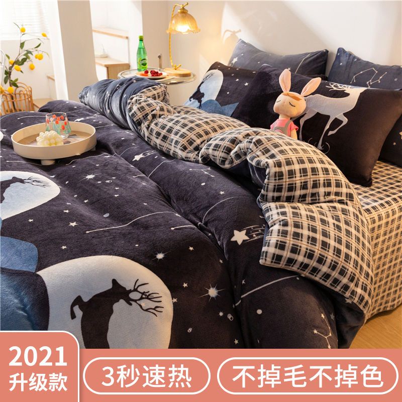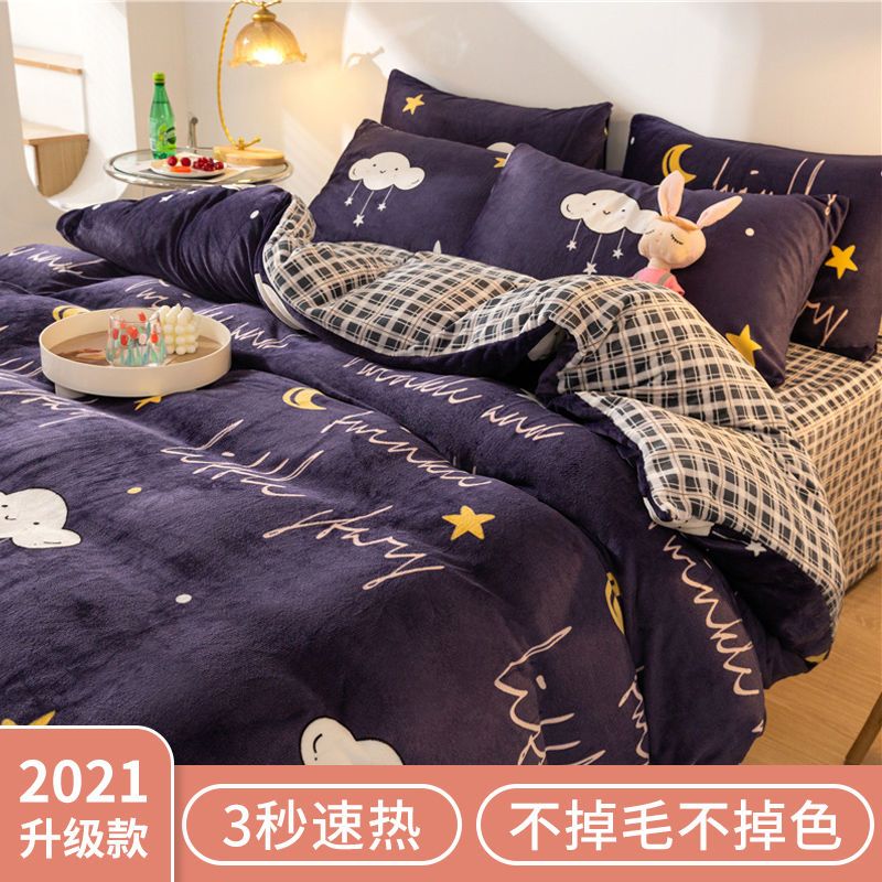 商品名称:冬季牛奶绒珊瑚绒四件套双面加绒加厚保暖床单被套床上用品三件套