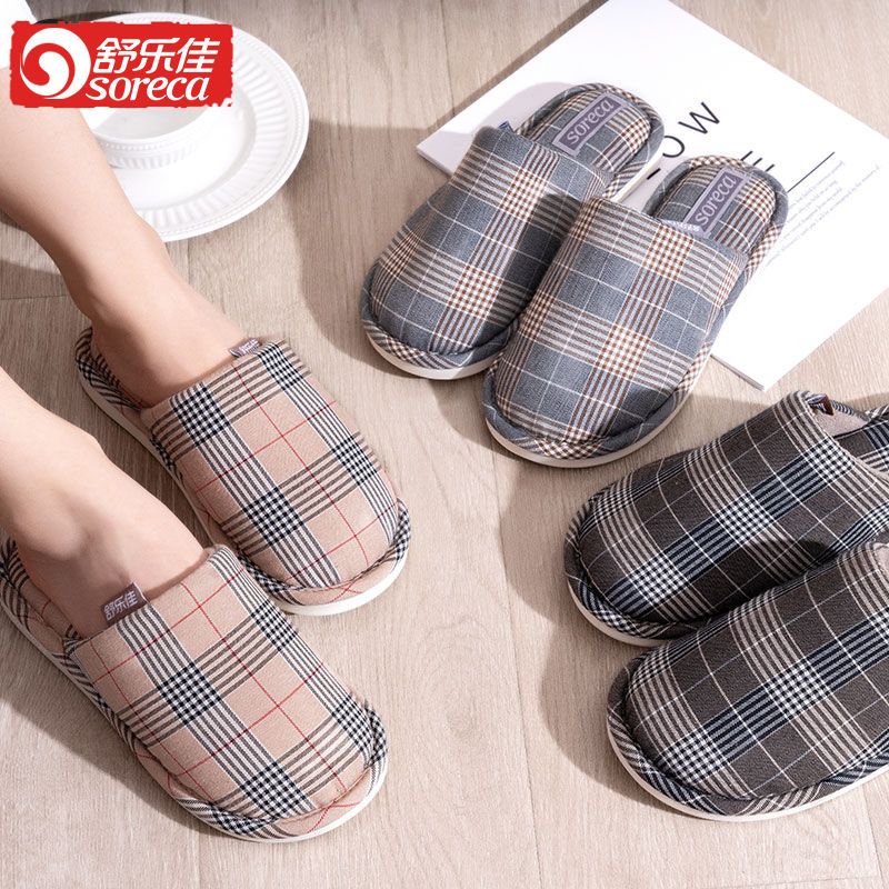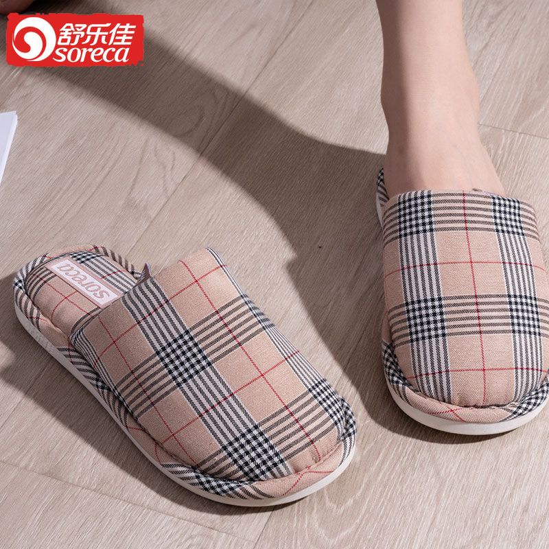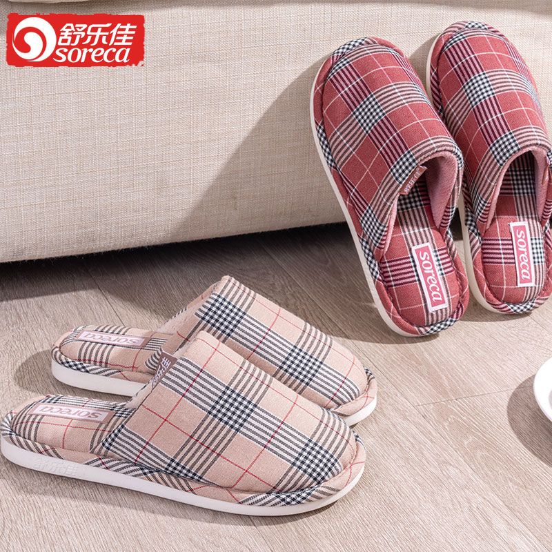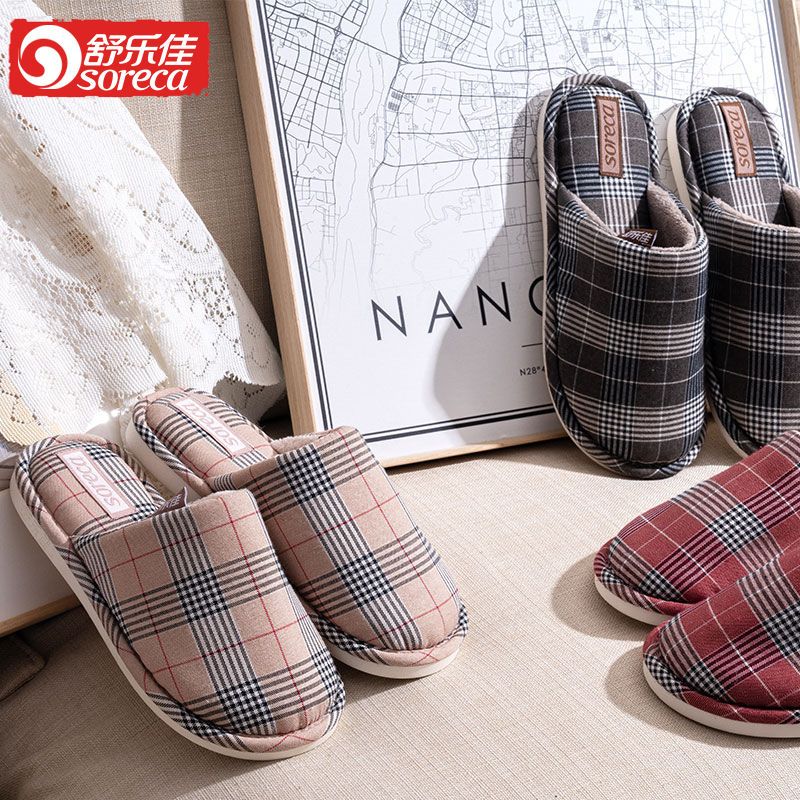 商品名称:舒乐佳拖鞋女冬季居家情侣防滑防臭布面拖鞋软底耐脏加厚保暖棉鞋