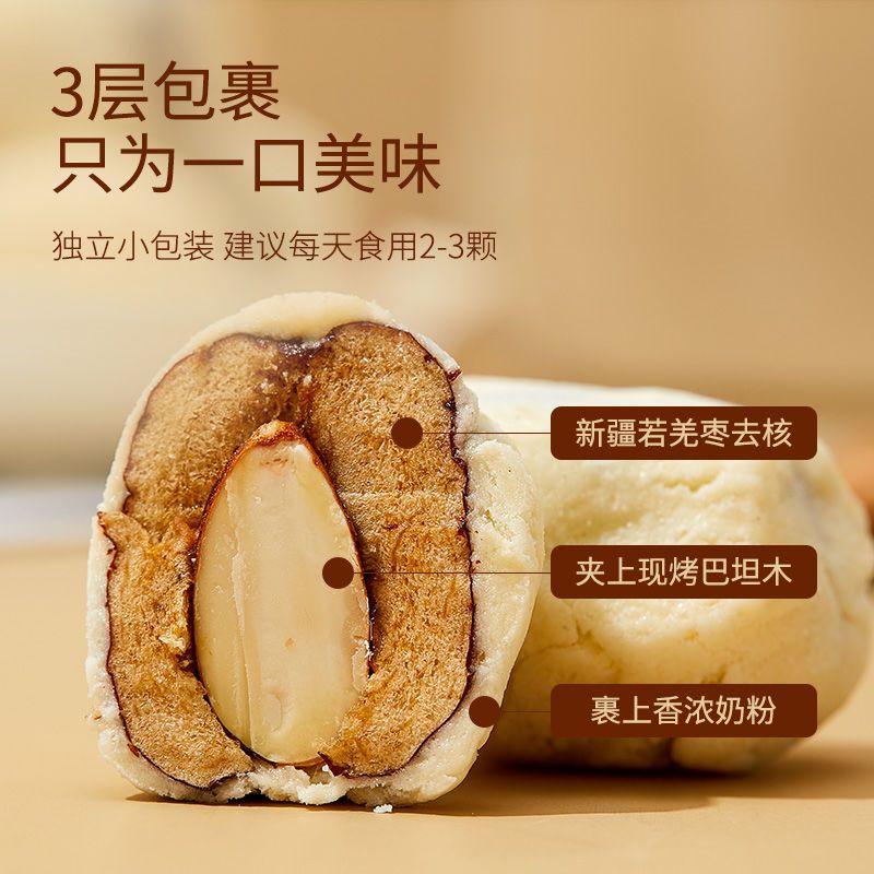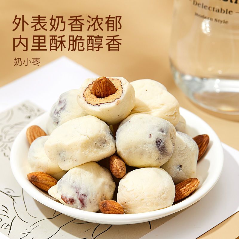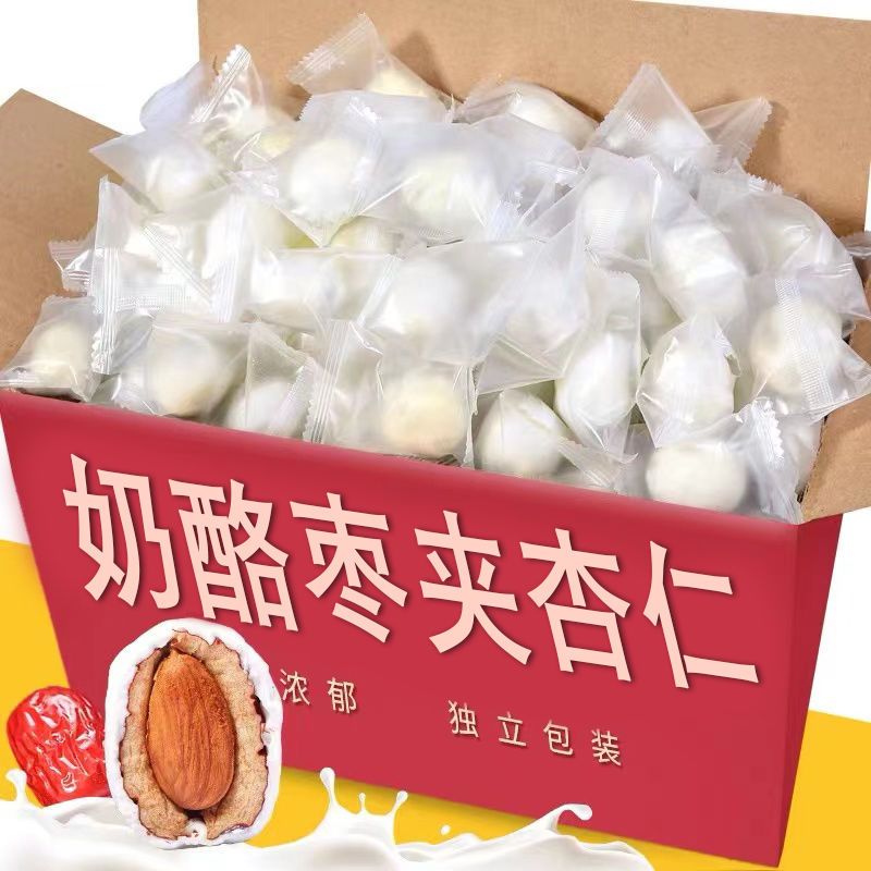 商品名称:奶酪枣新疆巴旦木夹心奶枣灰枣孕妇儿童休闲零食独立包装