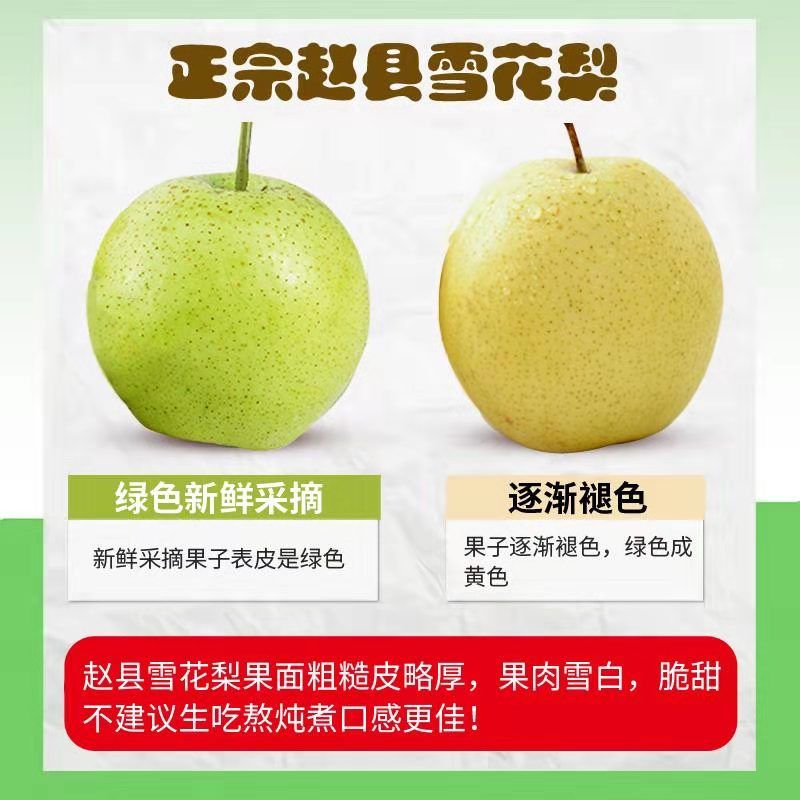 商品名称:精品河北雪花梨当季新鲜脆甜多汁现摘现发雪花梨3/5/10斤果园直发