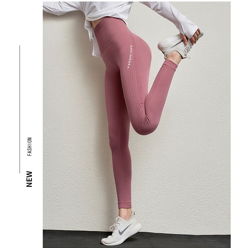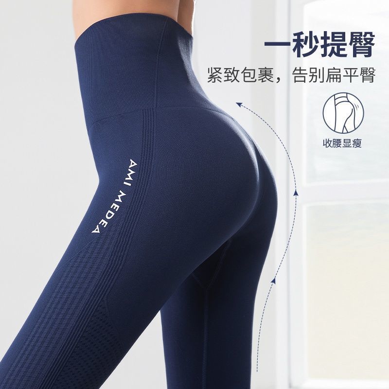 商品名称:无缝裸感运动瑜伽裤女紧身高腰蜜桃臀提臀高弹力健身速干跑步裤
