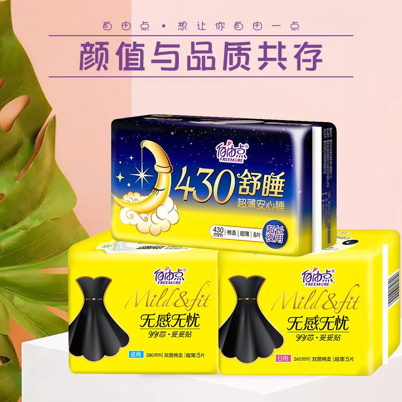 商品名称:自由点卫生巾日用夜用组合整箱精选棉超薄学生用大姨妈巾一箱批发