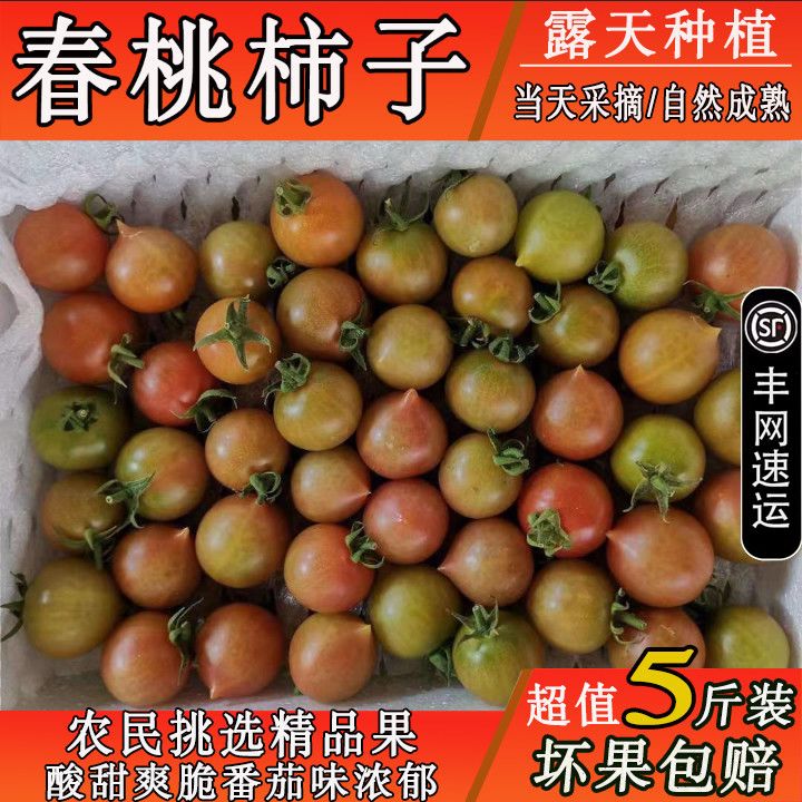 商品名称:现摘春桃柿子当季圣女果樱桃小番茄孕妇新鲜水果西红柿铁皮整箱