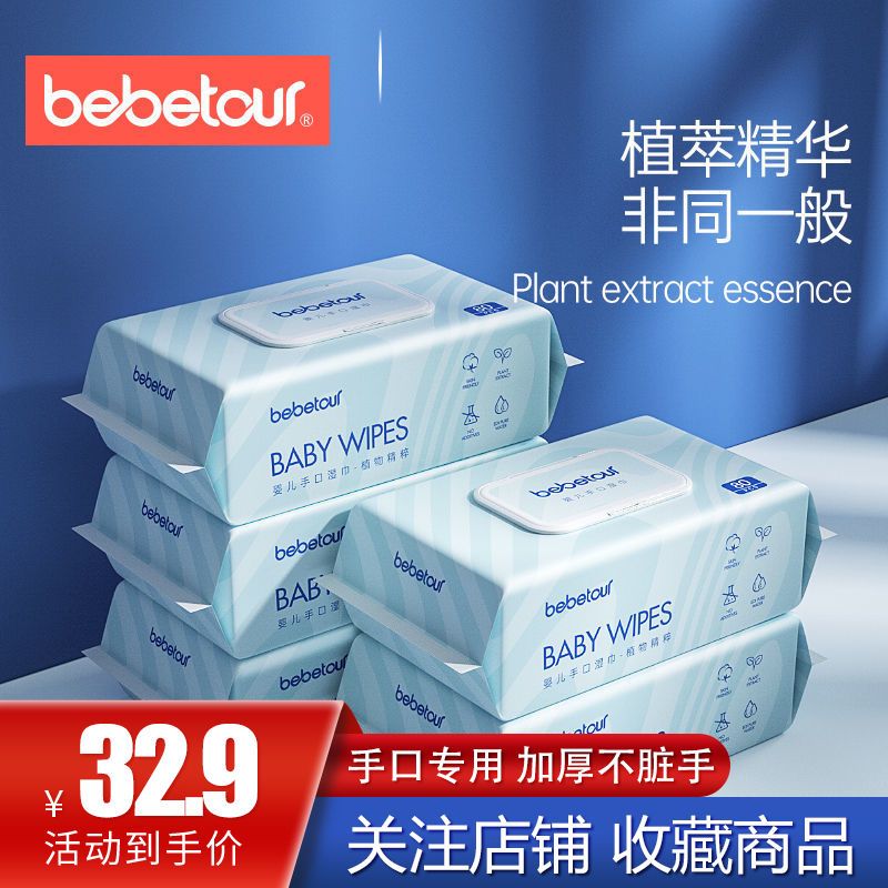 商品名称:bebetour婴儿湿巾植萃精华宝宝手口专用新生儿加厚湿巾80抽*5包