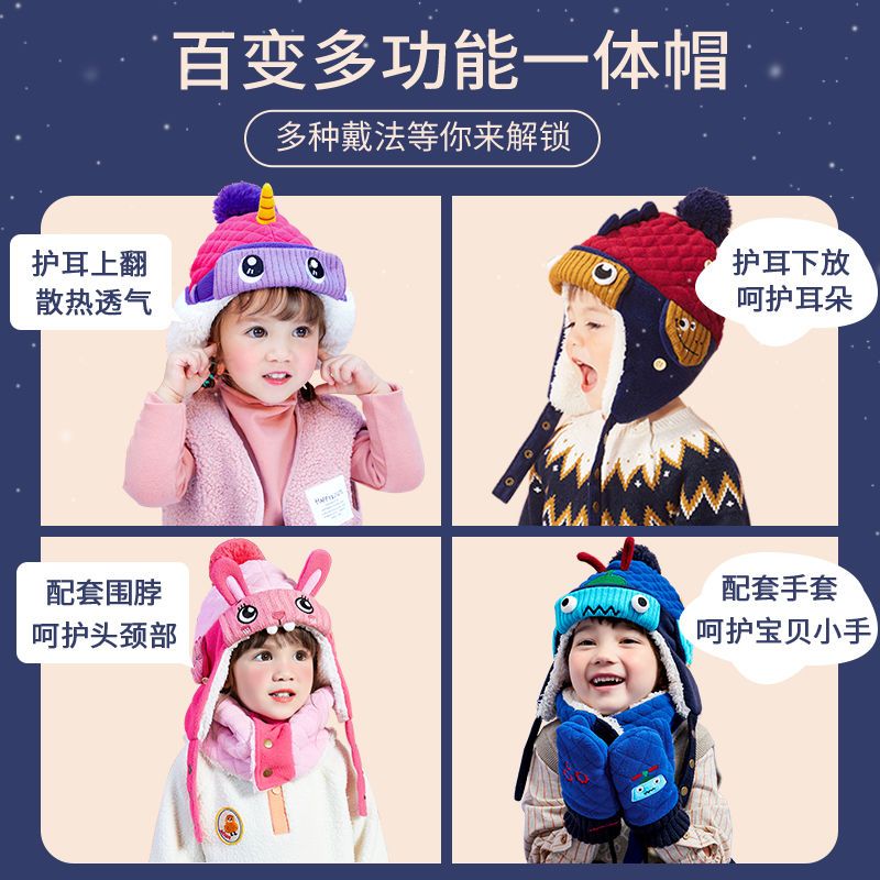 商品名称:柠檬宝宝韩版儿童卡通帽子秋冬款男女童小孩加厚保暖护耳雷锋帽萌