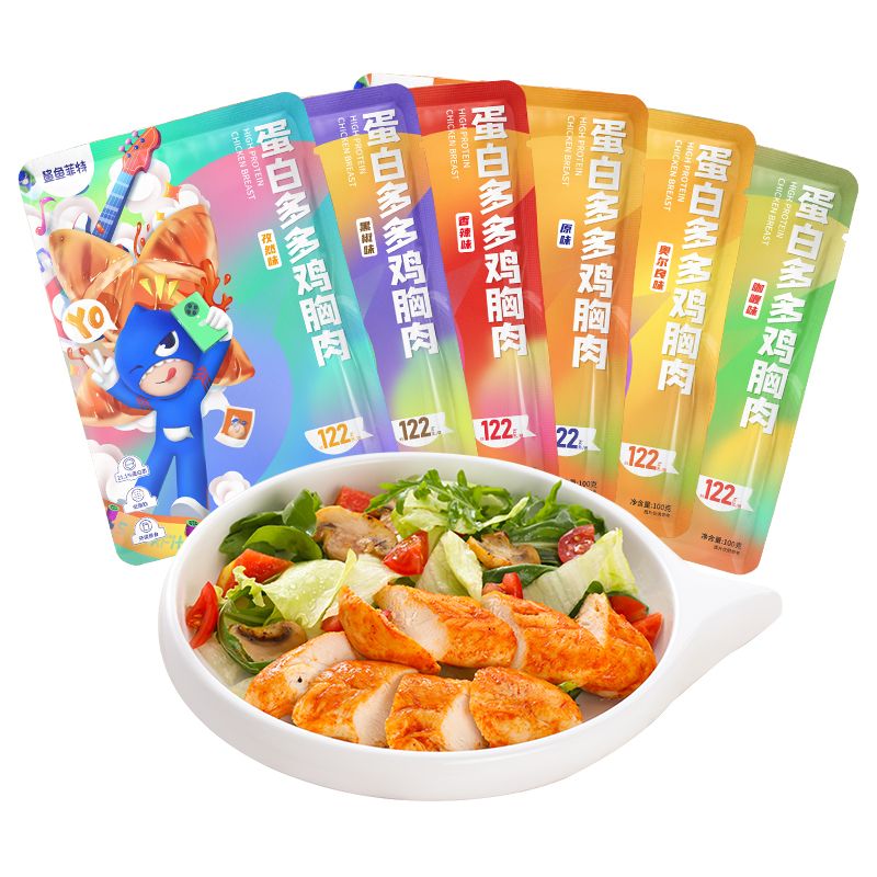 商品名称:鲨鱼菲特鸡胸肉100g*9袋即食健身高蛋白代餐减低脂饱腹鸡肉
