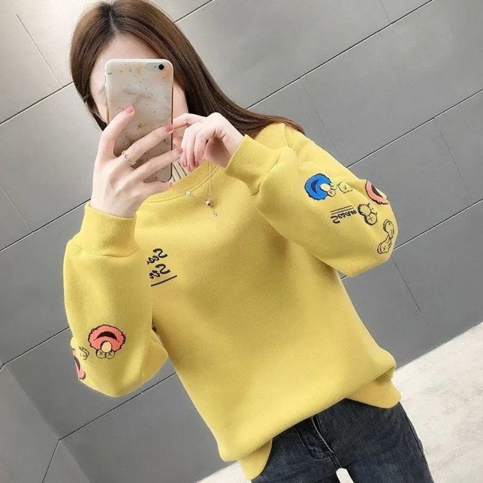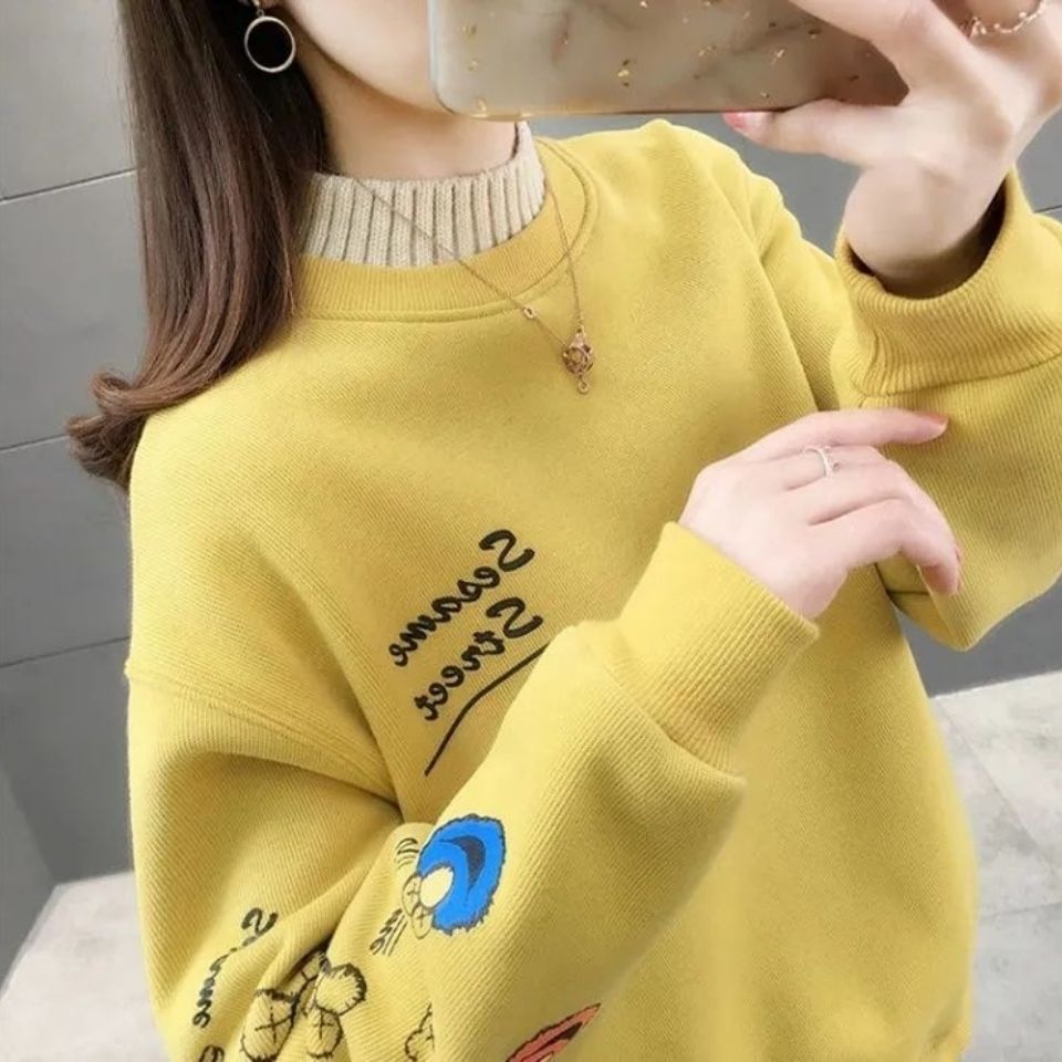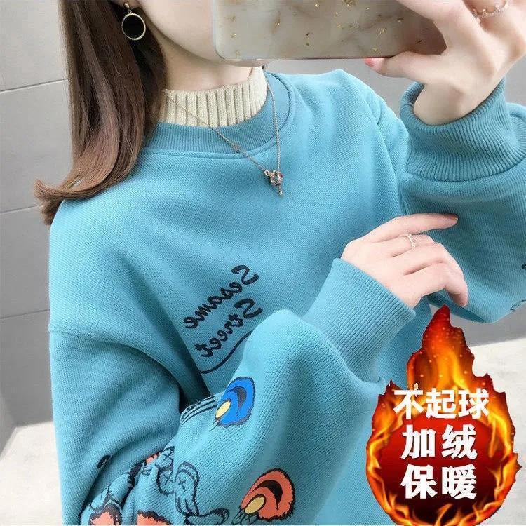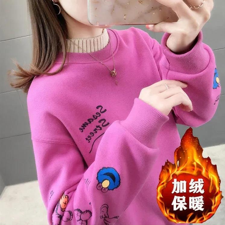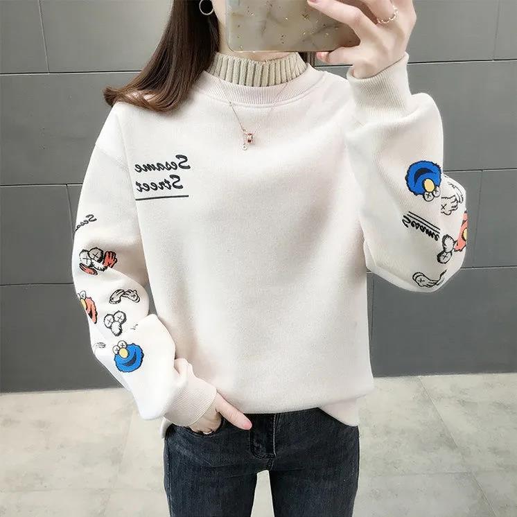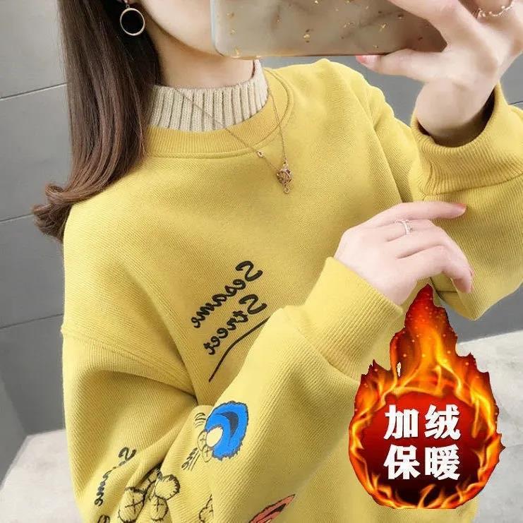 商品名称:加绒加厚女士卫衣2021年冬季新款韩版宽松假两件半高领长袖上衣潮