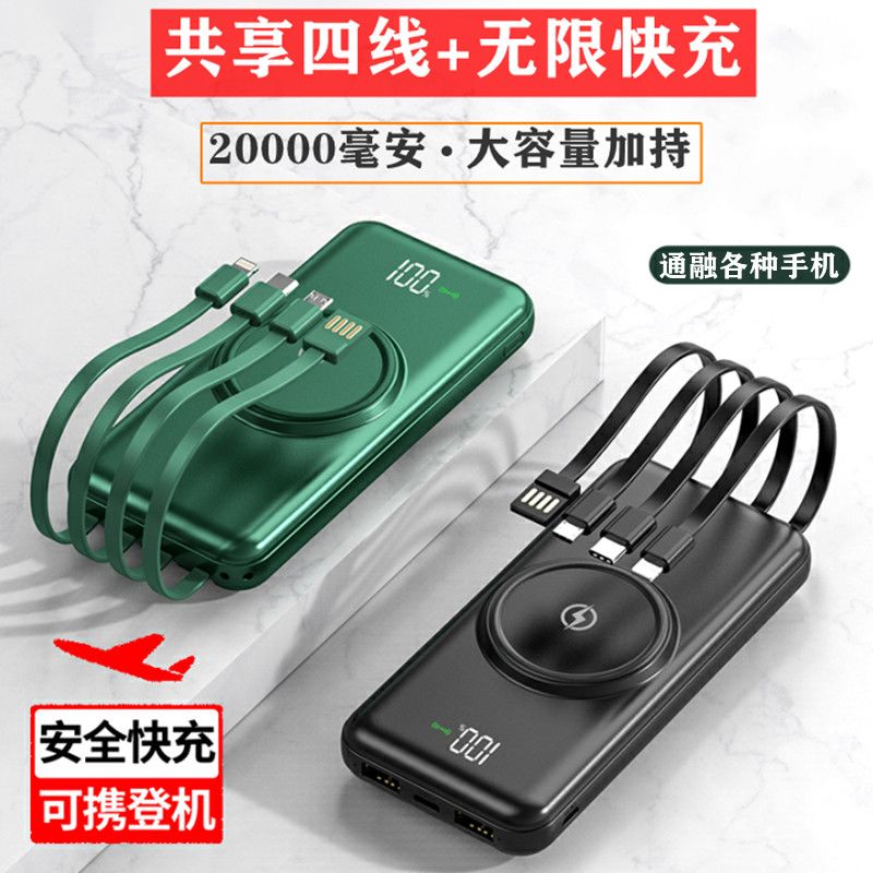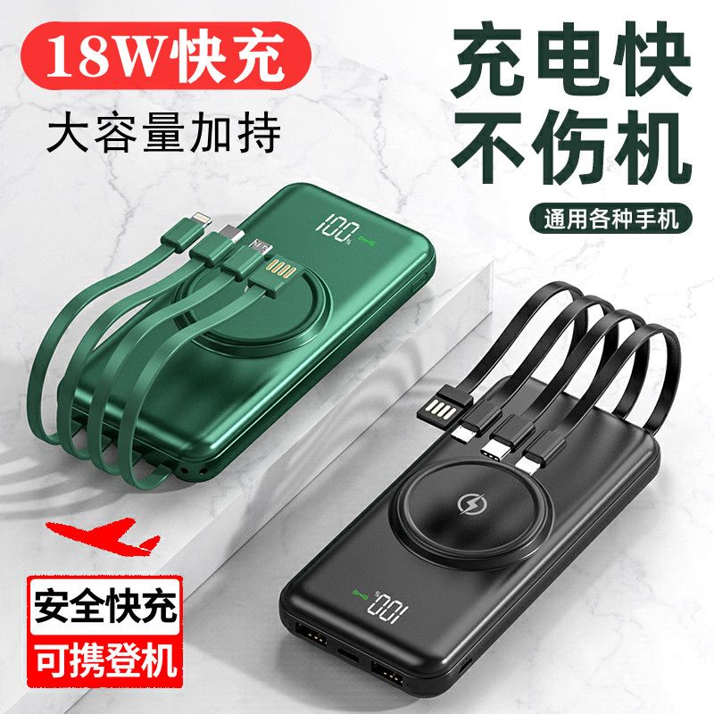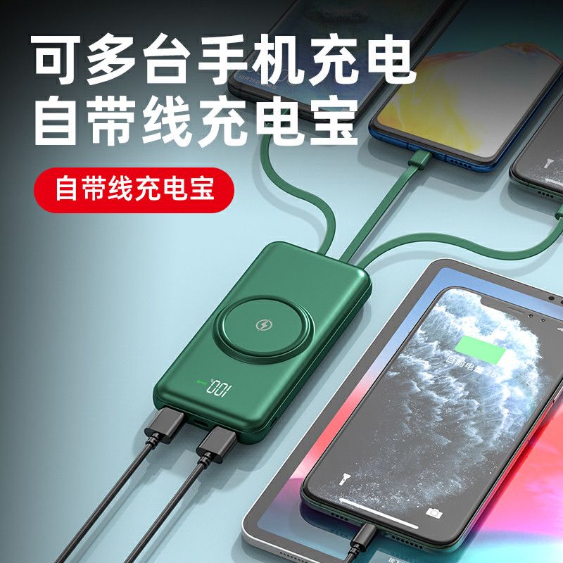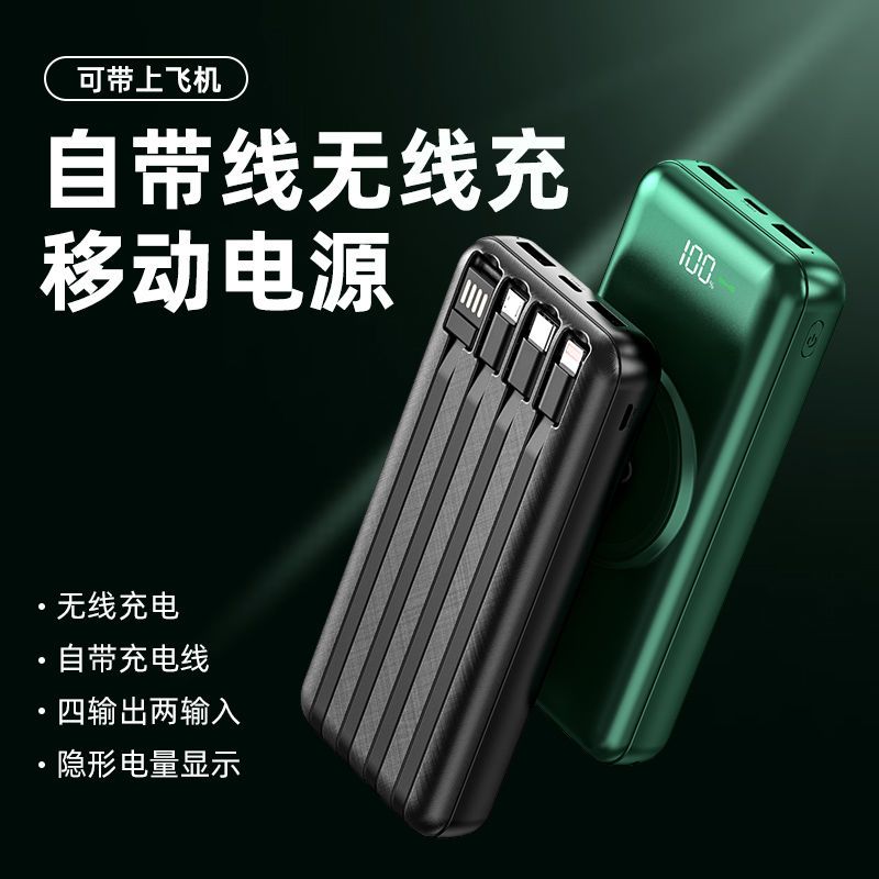 无线充电宝20000毫安大容量快充耐用自带线移动电源华为苹果通用