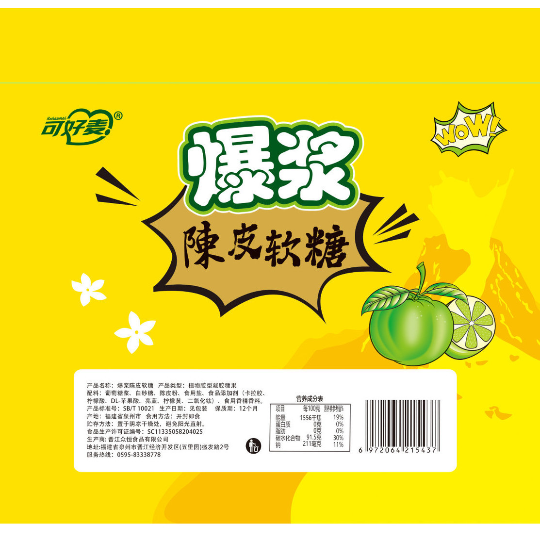 商品名称:可好麦爆浆夹心陈皮软糖水果味酸甜开胃消食休闲网红零食批发喜糖