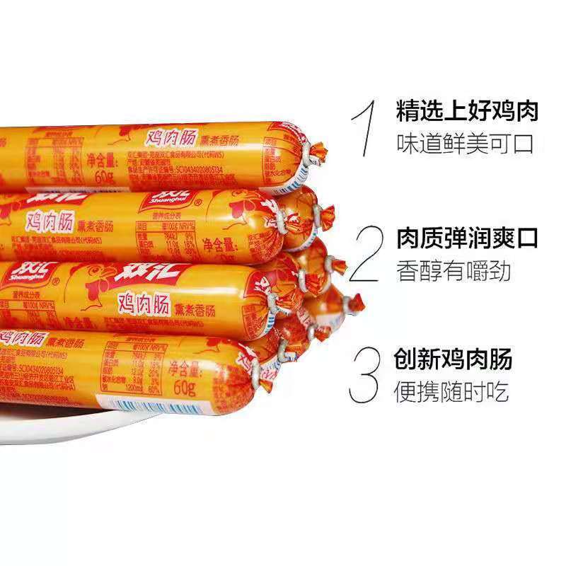 商品名称:双汇鸡肉肠60克整箱火腿肠批发泡面搭档即食零食烧烤煎炸香肠