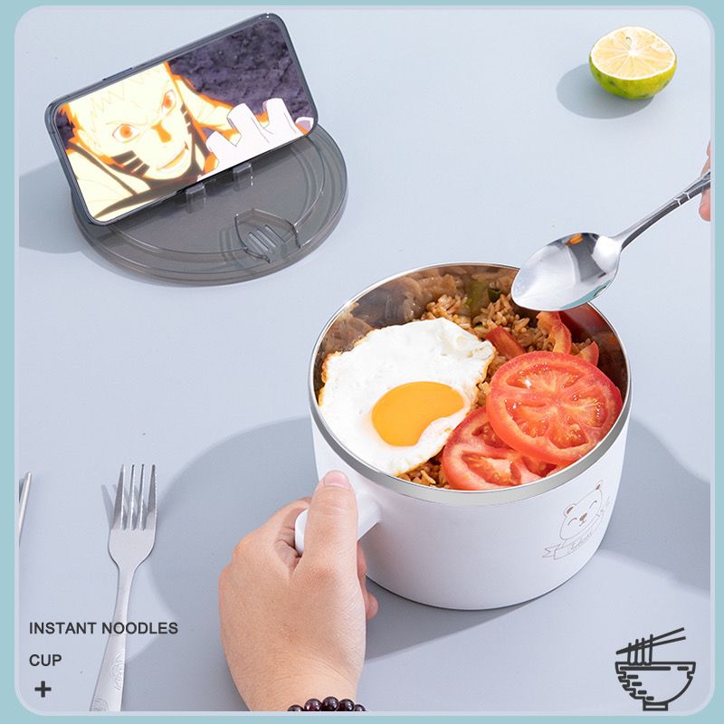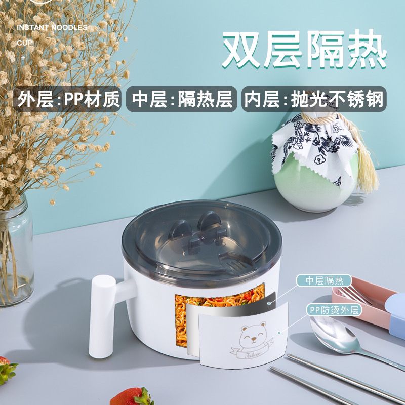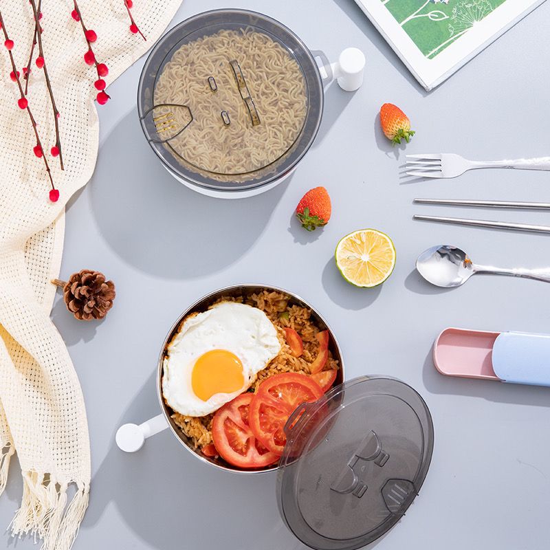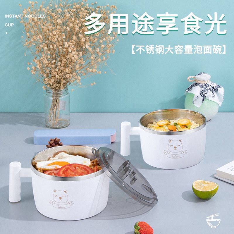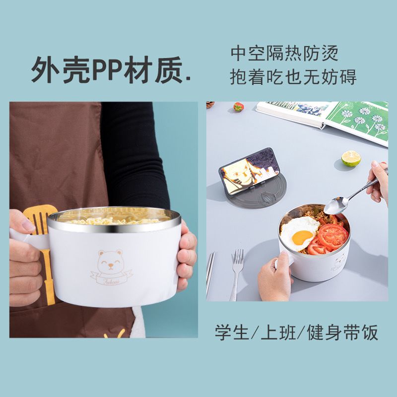 商品名称:304不锈钢泡面碗带盖学生宿舍上班族大号可沥水吃饭碗筷套装饭盒