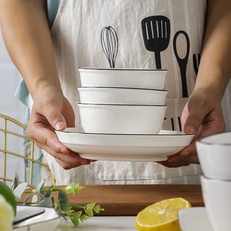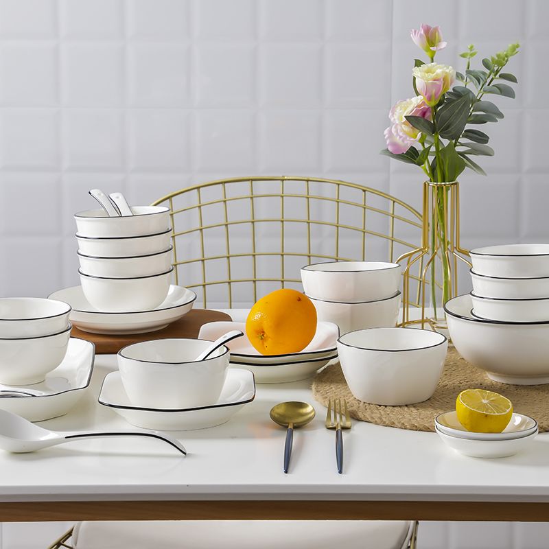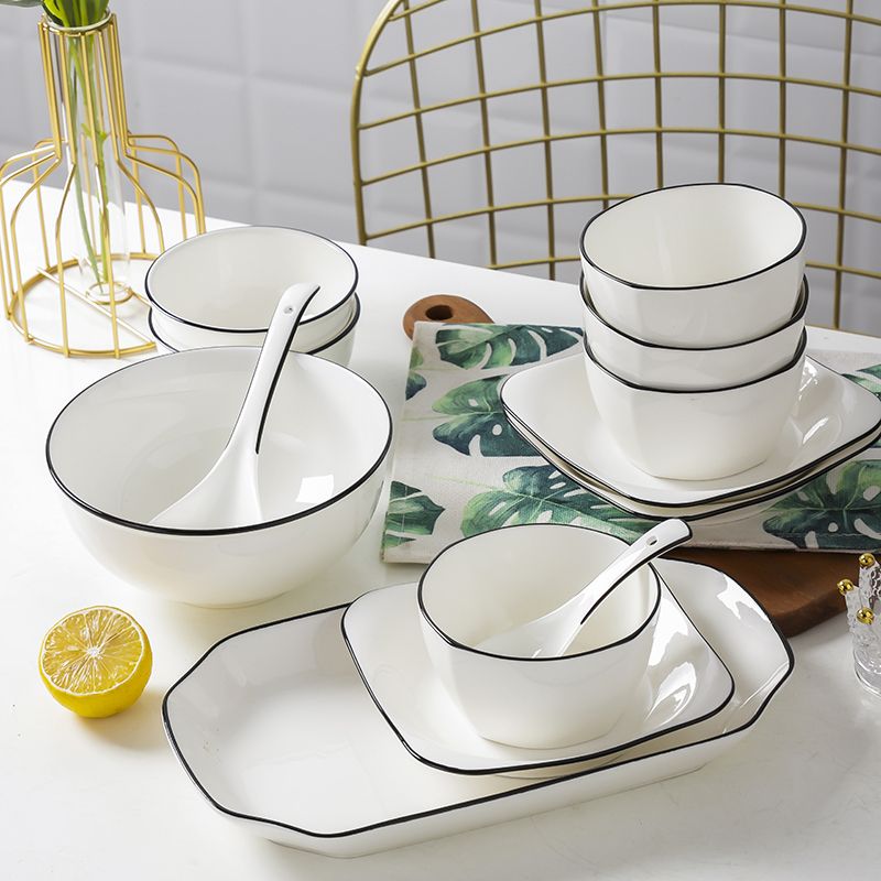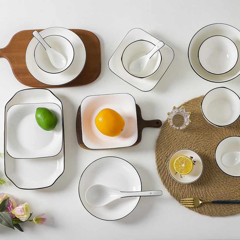 商品名称:碗碟套装 家用北欧网红ins现代简约欧式创意组合黑线陶瓷餐具套装