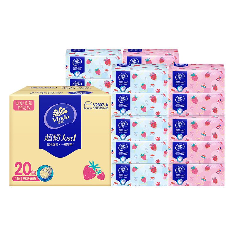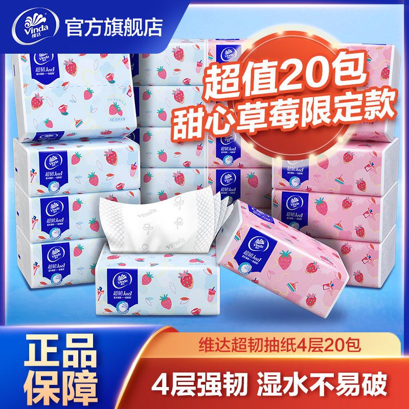 商品名称:维达超韧抽纸4层甜心草莓限定款20包面巾纸纸巾餐巾纸家用整箱