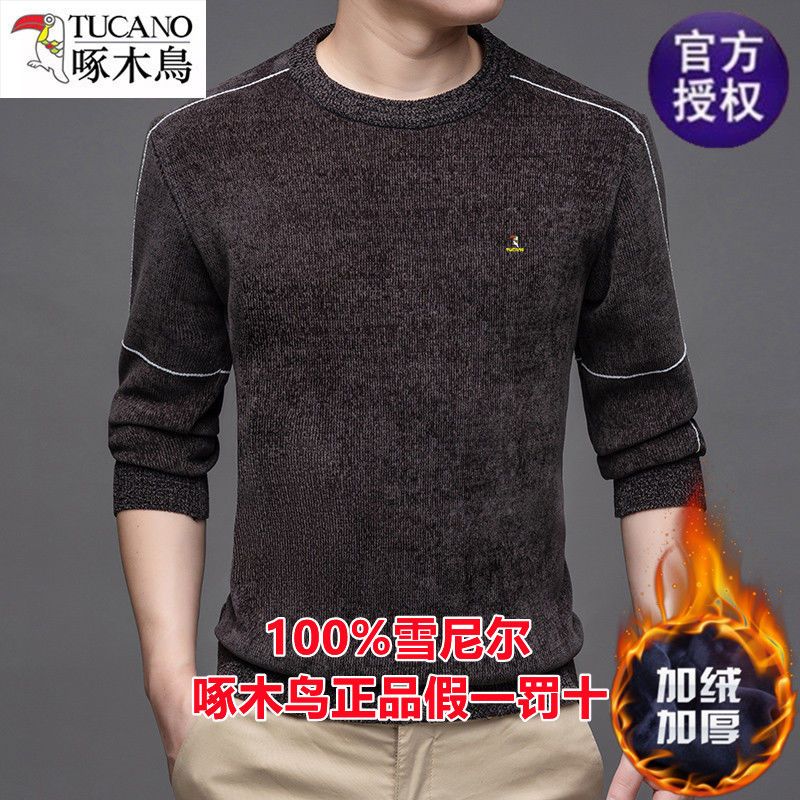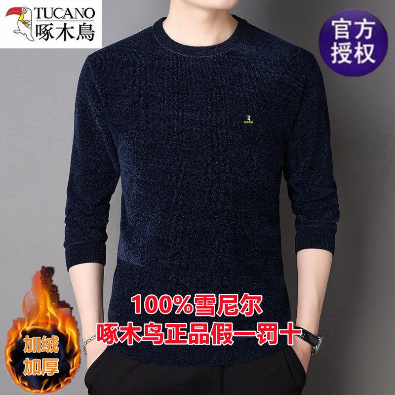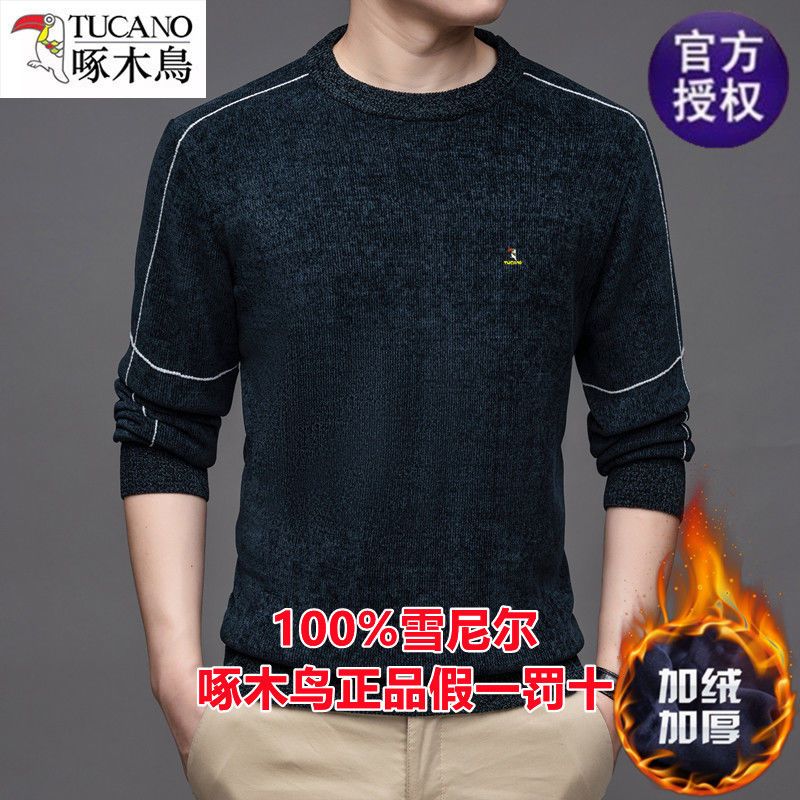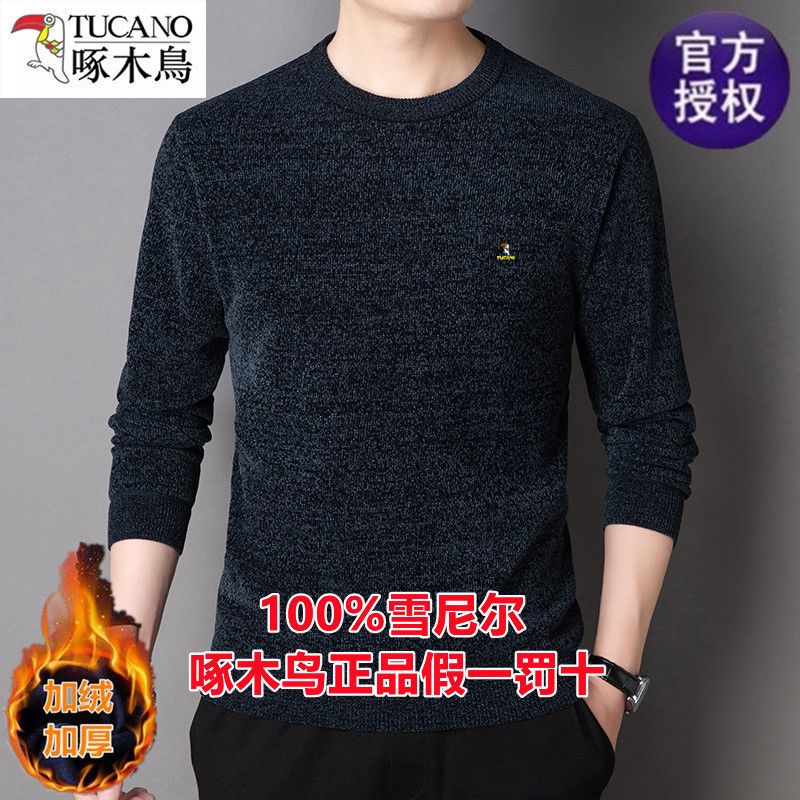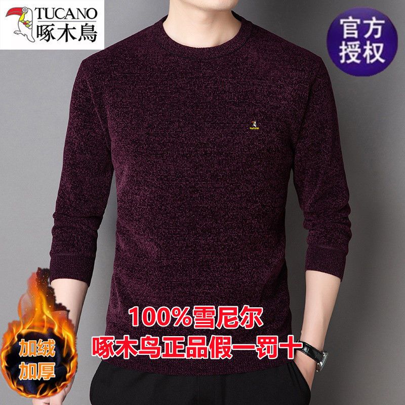 商品名称:啄木鸟冬季男士长袖t恤圆领雪尼尔上衣加绒特厚针织打底衫毛衣男