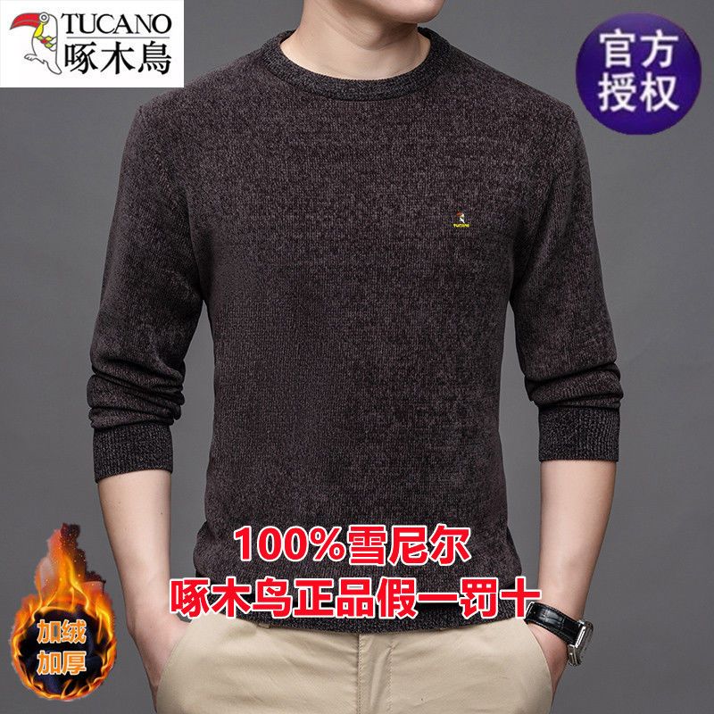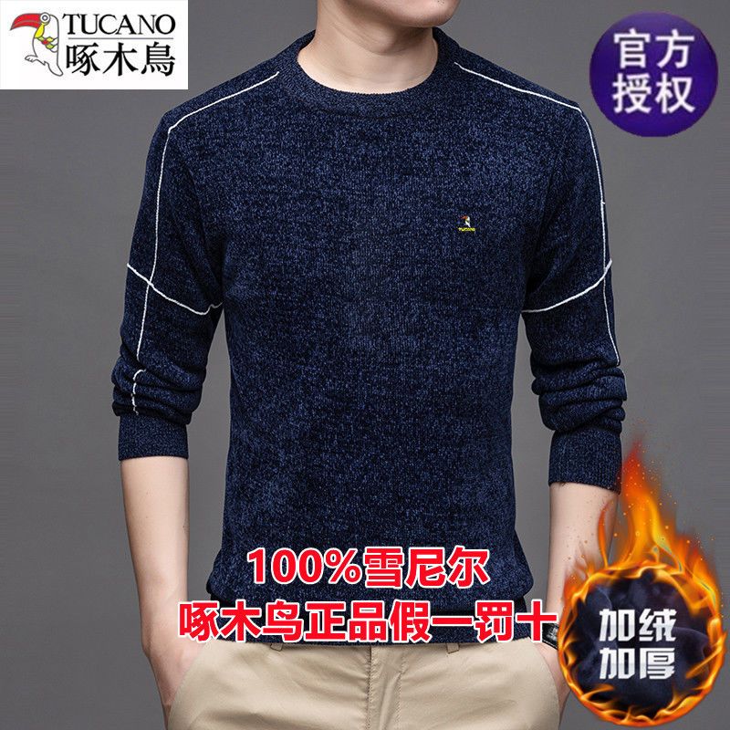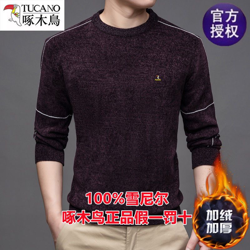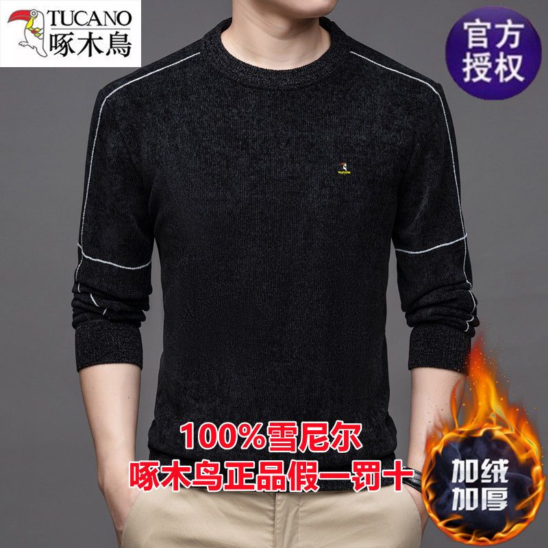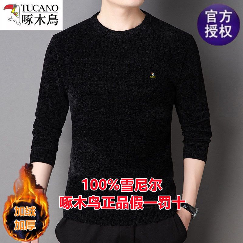 商品名称:啄木鸟冬季男士长袖t恤圆领雪尼尔上衣加绒特厚针织打底衫毛衣男