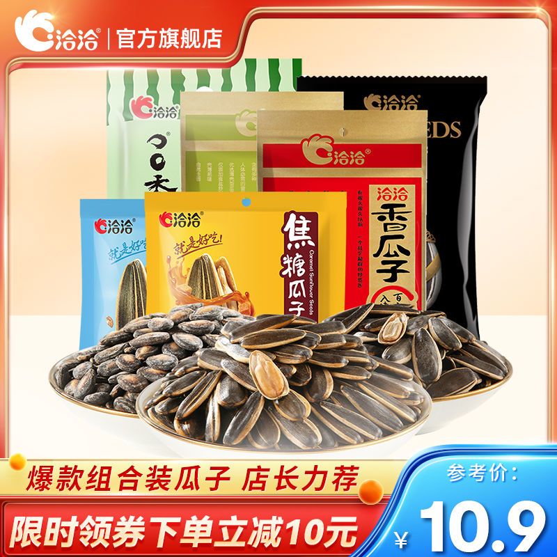商品名称:洽洽瓜子小规格混合10袋(香瓜子、皇葵、山核桃、焦糖、西瓜子)