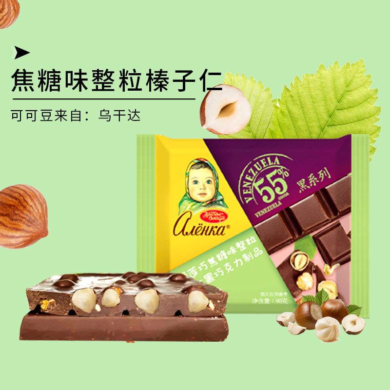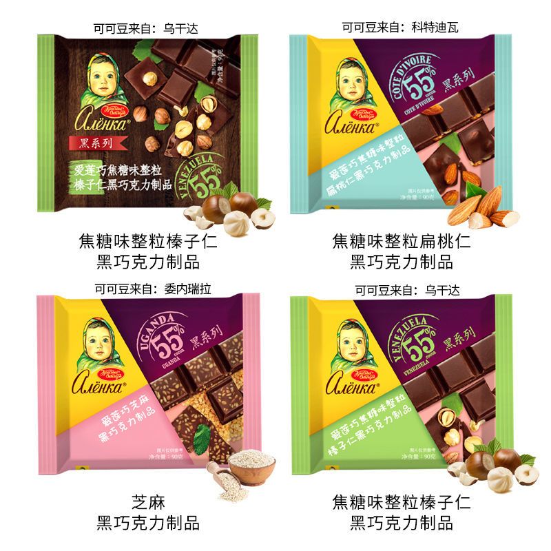 商品名称:爱莲巧新品巧克力90g俄罗斯巧克力大板块大头娃娃纯可可脂新品