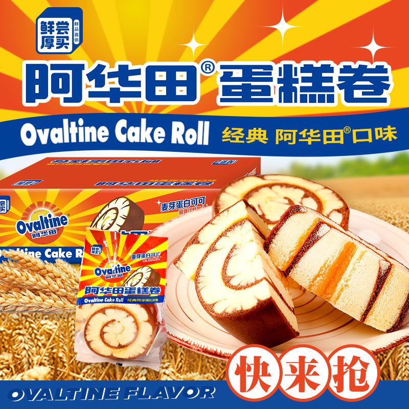 商品名称:阿华田蛋糕卷450g袋装麦芽可可营养早餐面包网红糕点点心休闲小吃