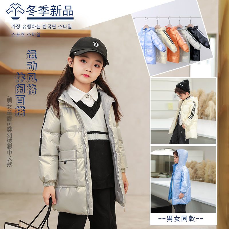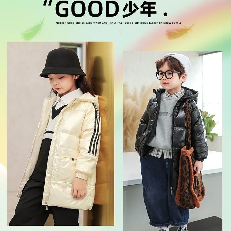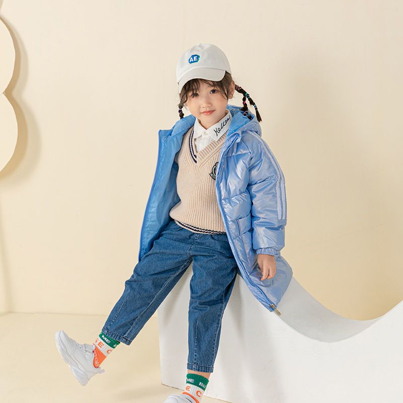 商品名称:新款儿童羽绒服中长款男女童白鸭绒外套加厚保暖亮面免洗连帽童装