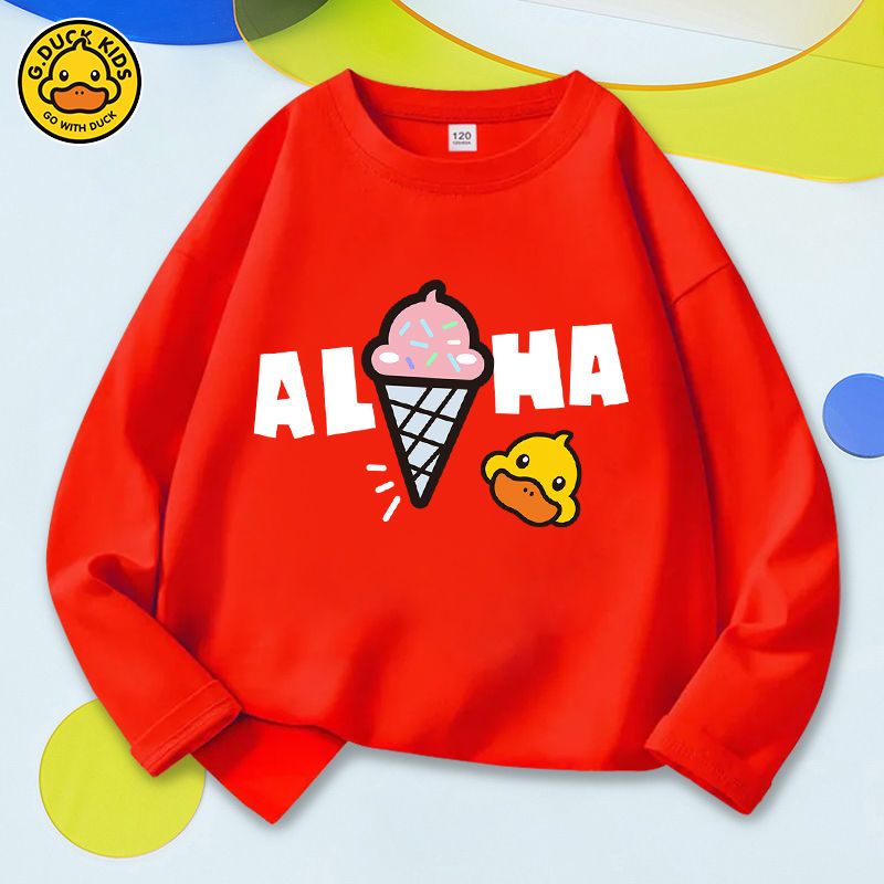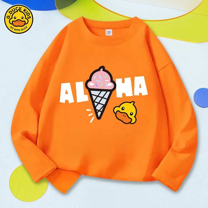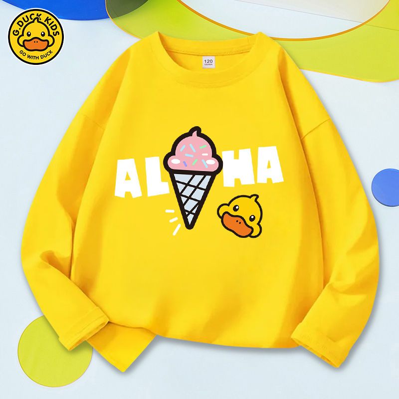 商品名称:小黄鸭儿童t恤长袖男女可穿2022春装洋气儿童打底衫纯棉时尚上衣