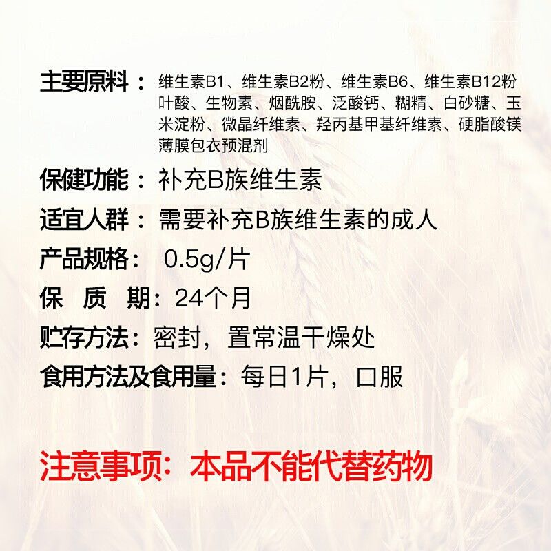 商品名称:养生堂多种维生素B族片120片男士女士成人复合维生素B1B2b6b12