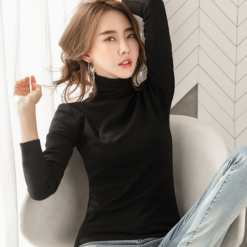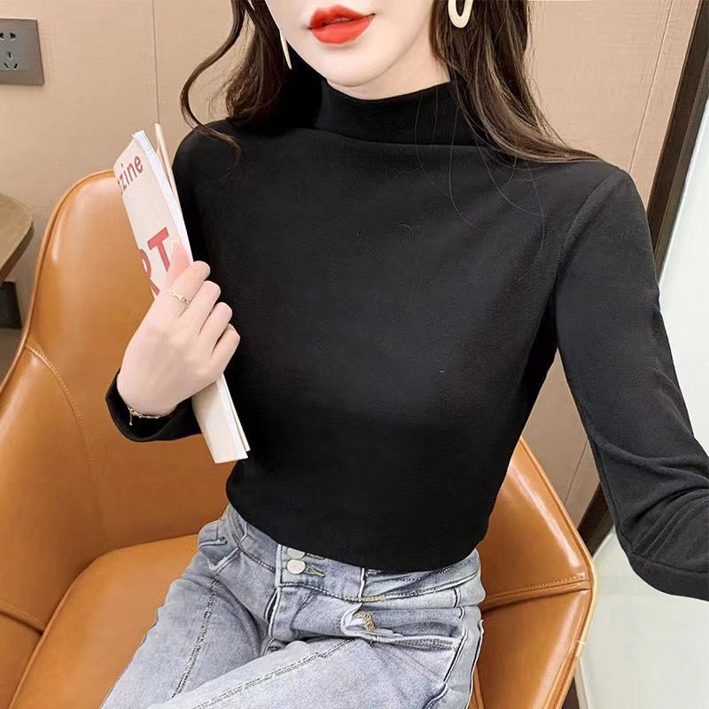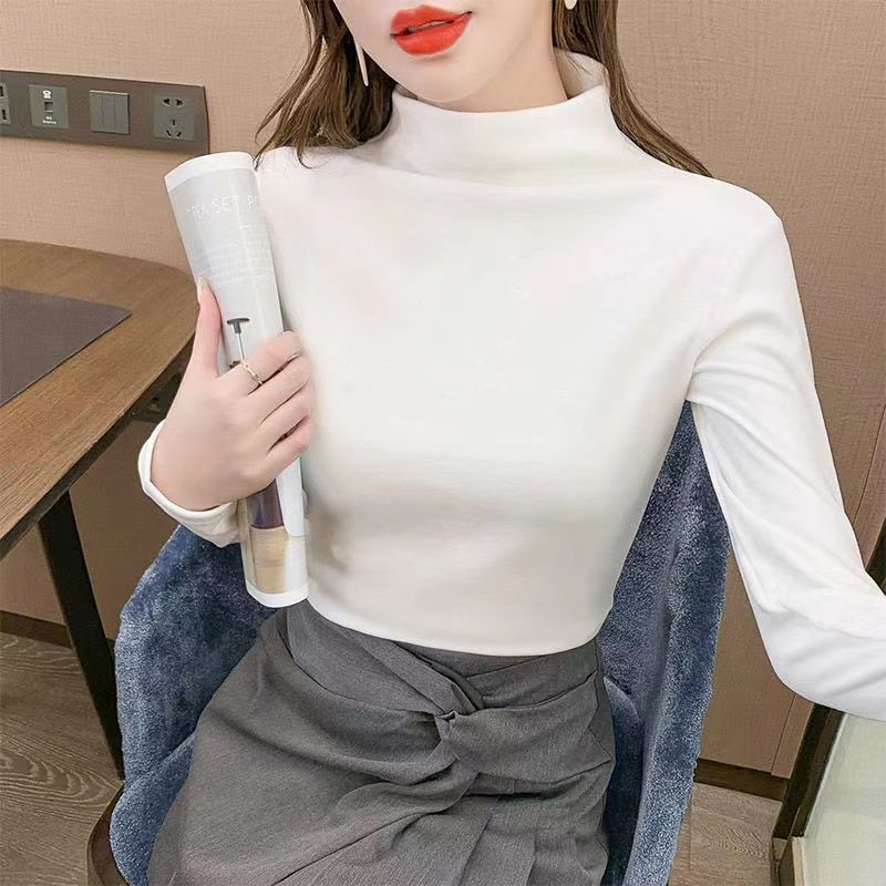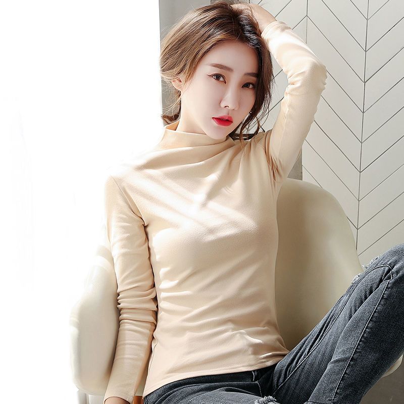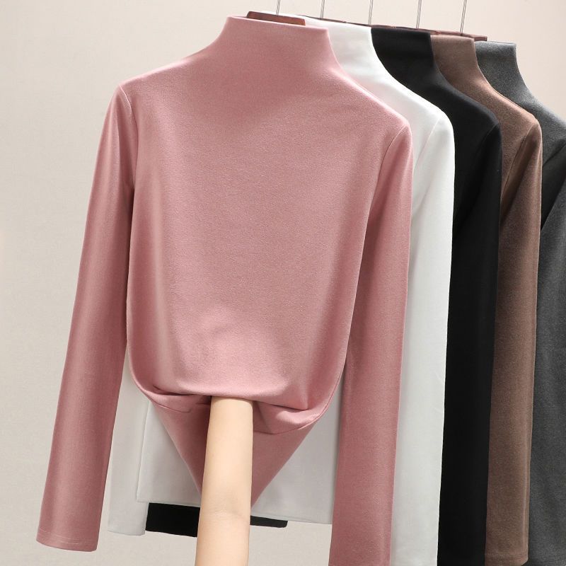 商品名称:双面德绒打底衫女秋冬洋气2021新款半高领长袖加绒加厚秋T恤内搭
