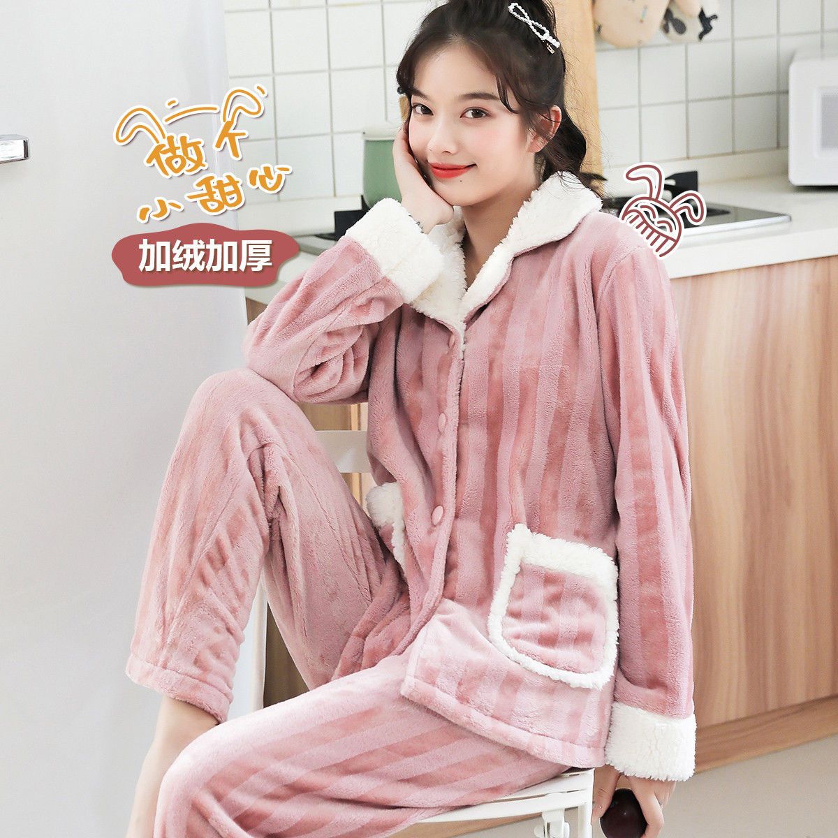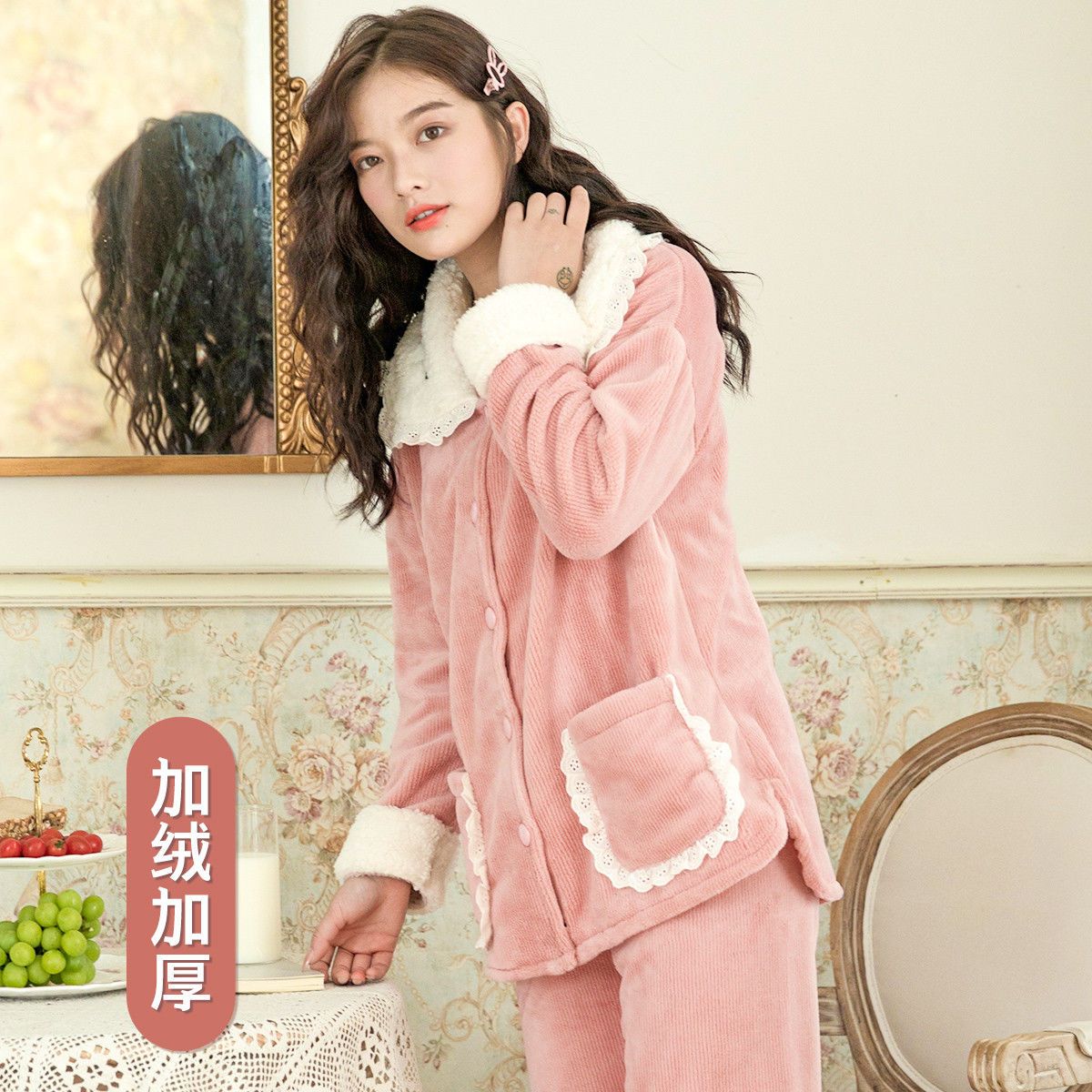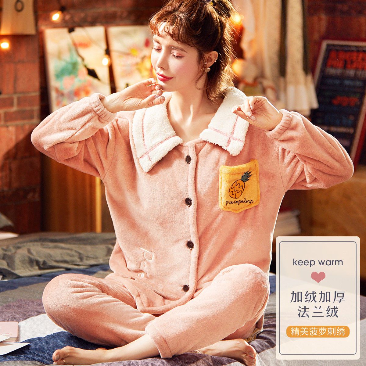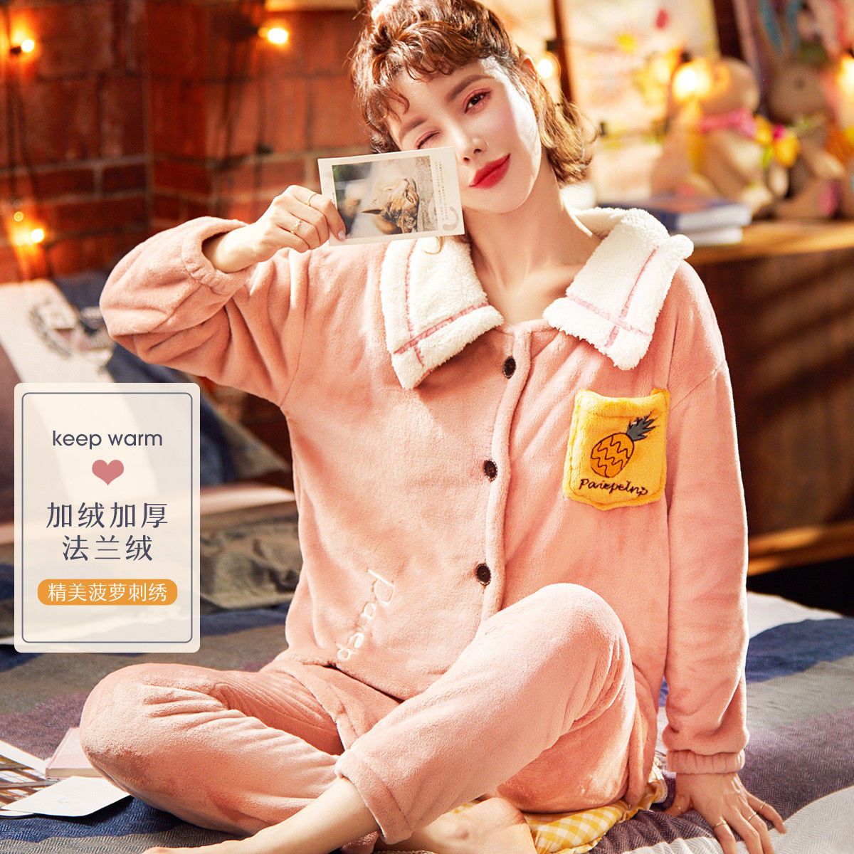 商品名称:加绒加厚珊瑚绒睡衣女冬长袖女士家居服女士法兰绒睡衣女秋冬保暖