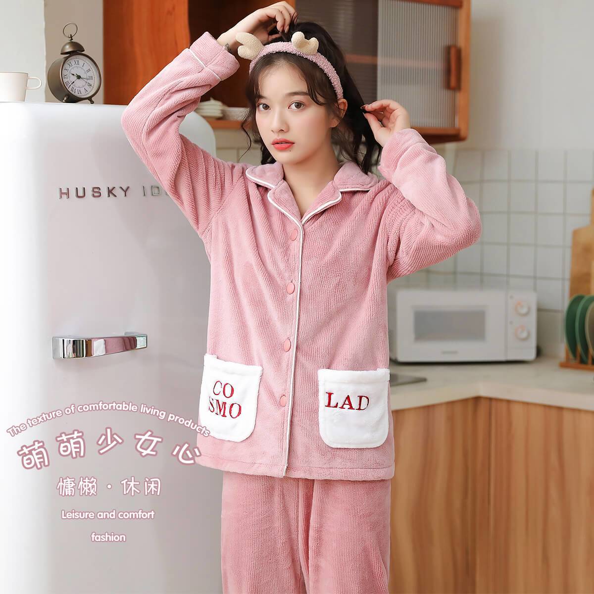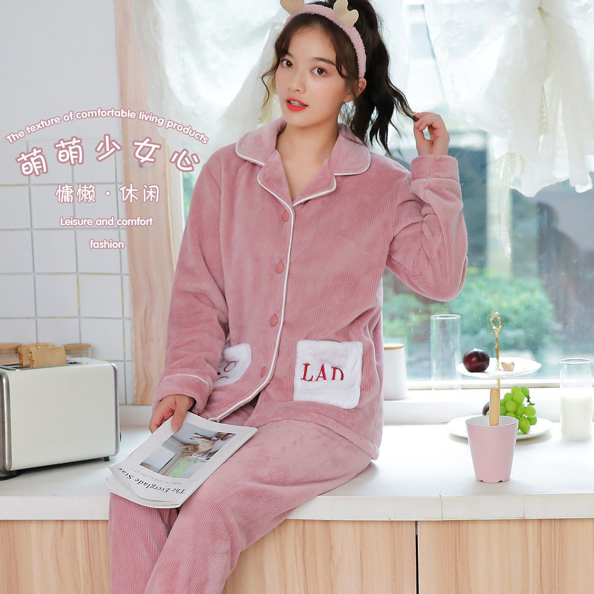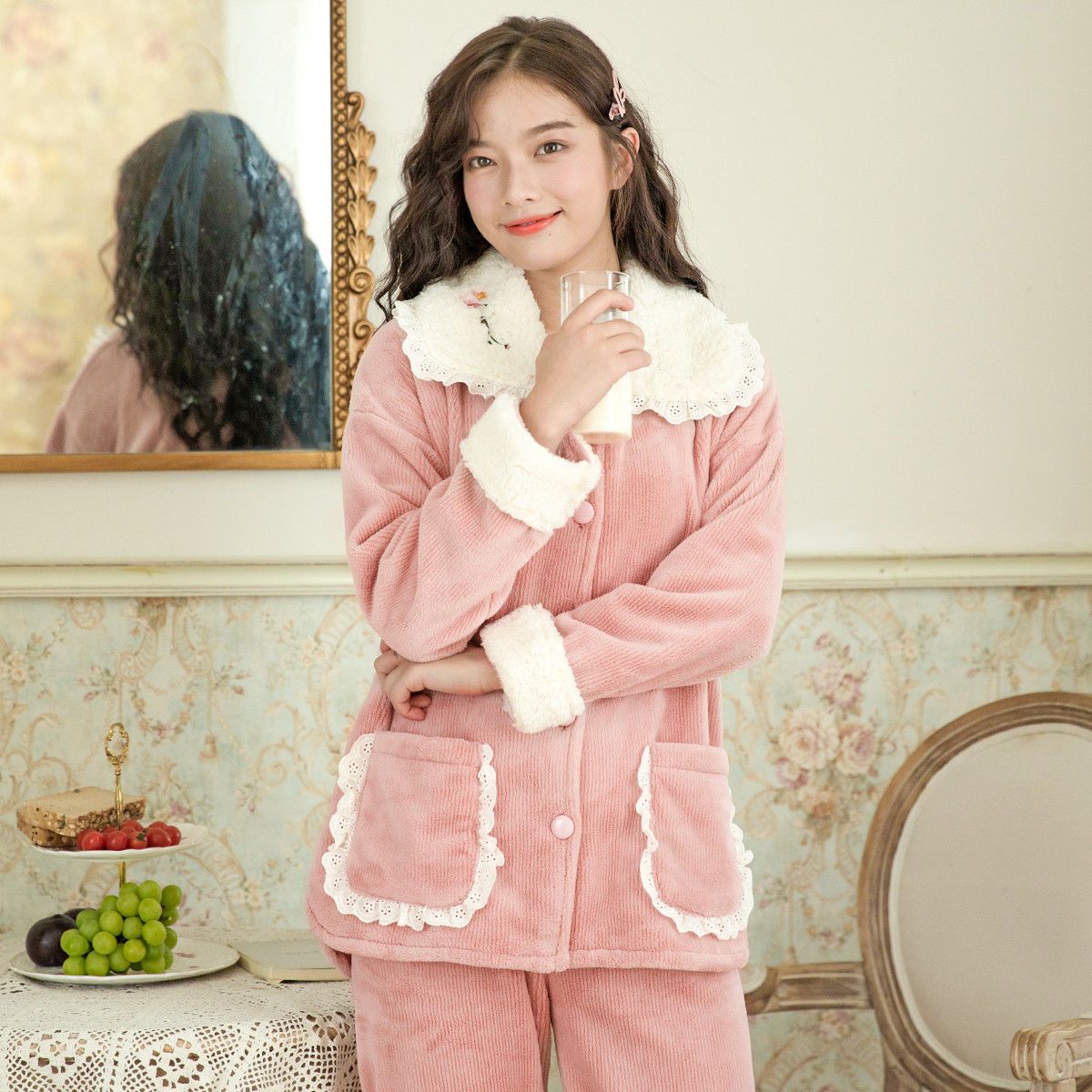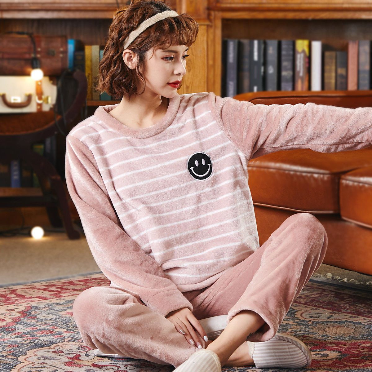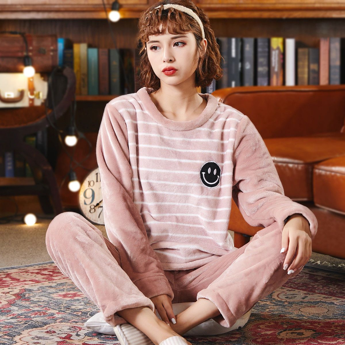 商品名称:加绒加厚珊瑚绒睡衣女冬长袖女士家居服女士法兰绒睡衣女秋冬保暖