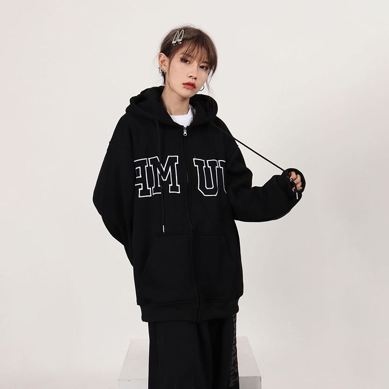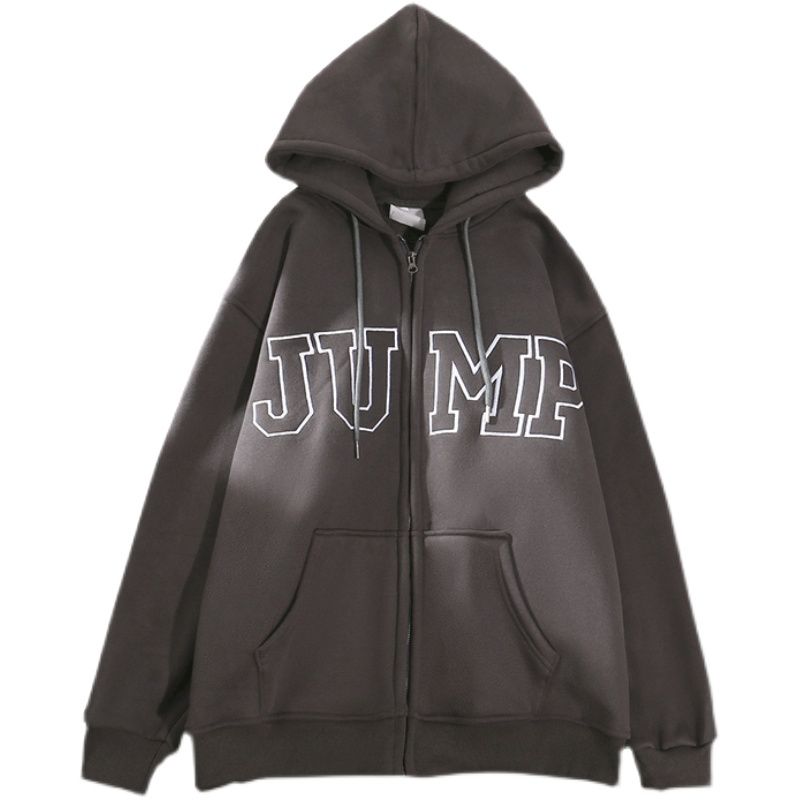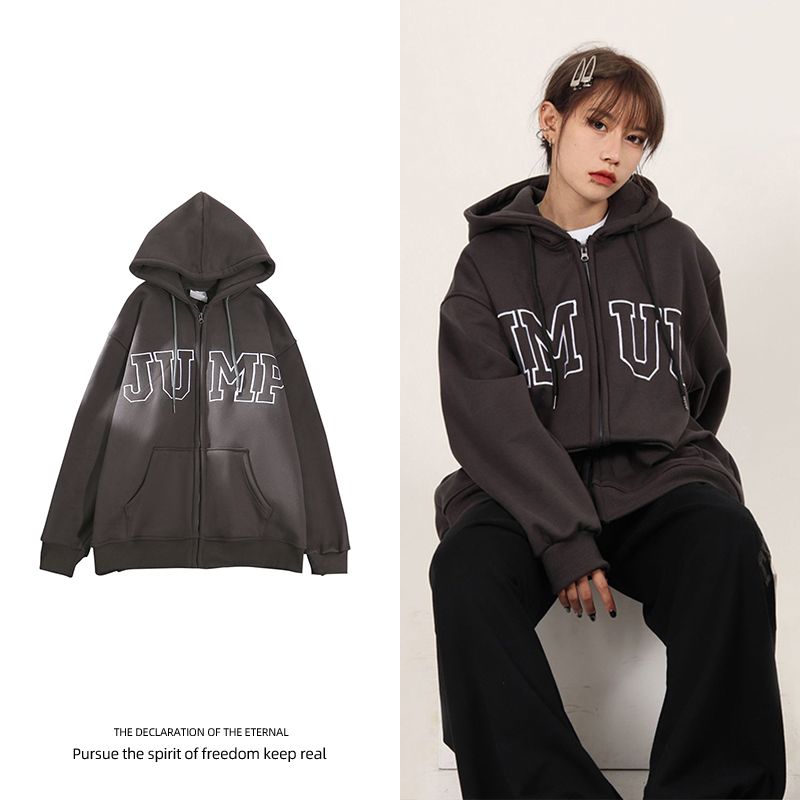 商品名称:美式复古春秋季潮牌刺绣外套情侣卫衣宽松开衫运动连帽上衣服男女