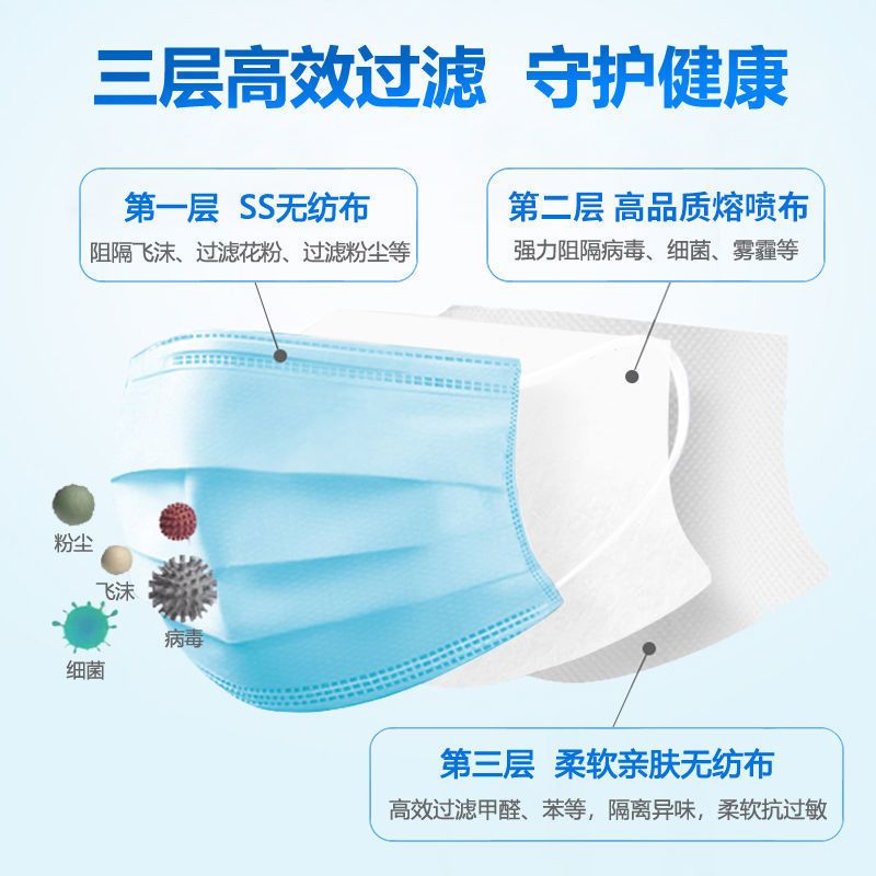 商品名称:一次性口罩三层防护医用级防细菌防尘成人儿童防新防晒一次性