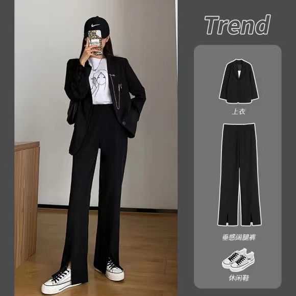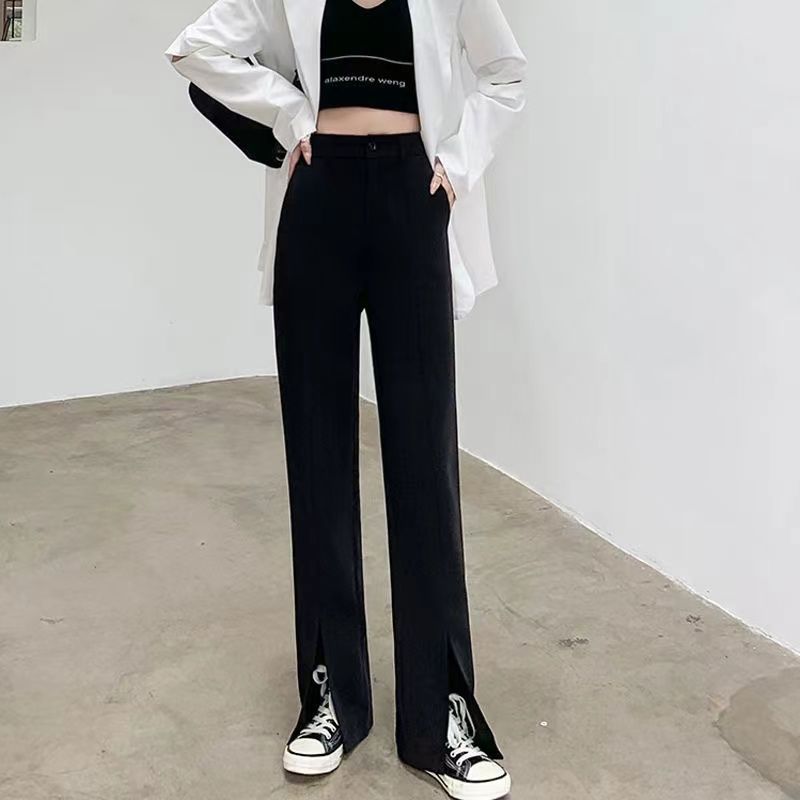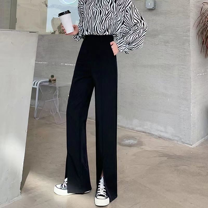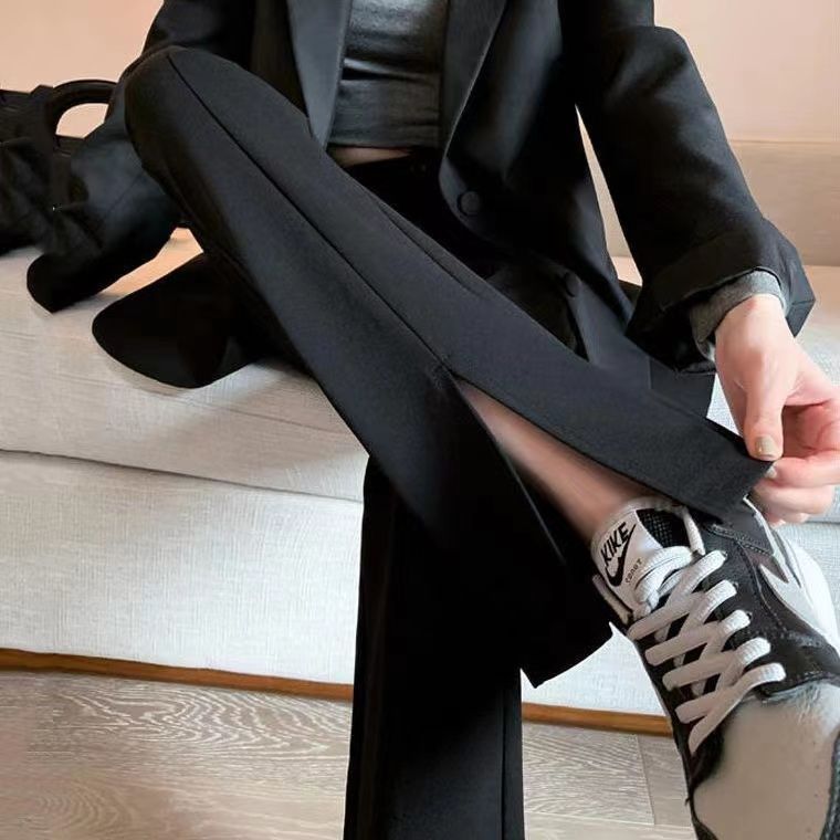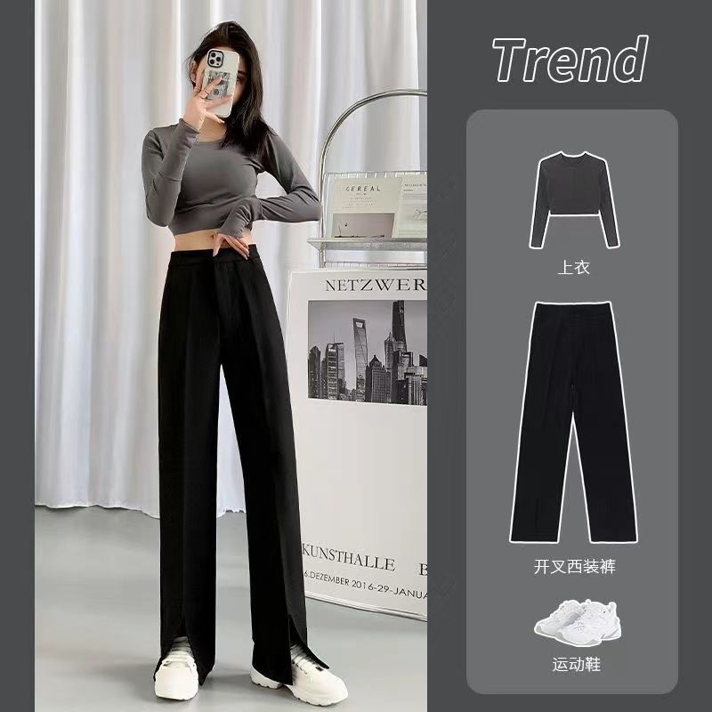 商品名称:阔腿裤春秋季黑色开叉西装裤女垂坠感高腰显瘦裤子直筒宽松拖地裤