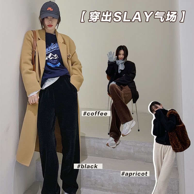 商品名称:雪尼尔阔腿裤女秋冬2021新款直筒百搭显瘦加绒灯芯绒裤子春秋长裤
