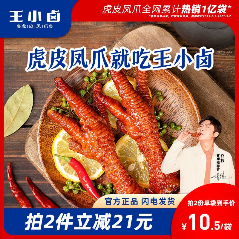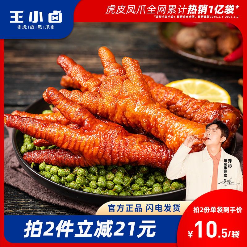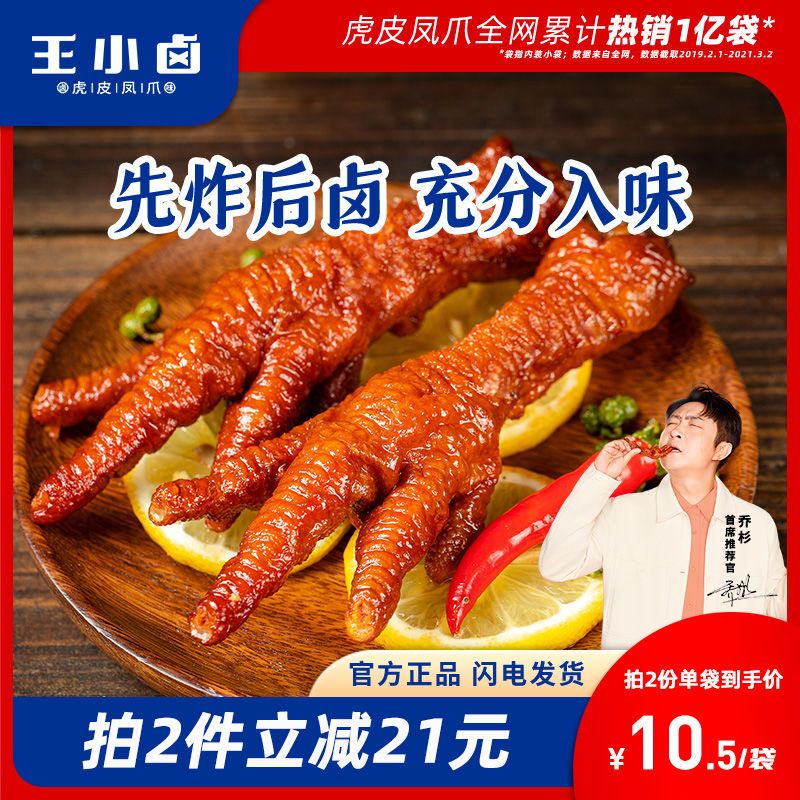 商品名称:王小卤虎皮凤爪休闲追剧网红好吃的鸡爪肉类办公室小零食3袋装
