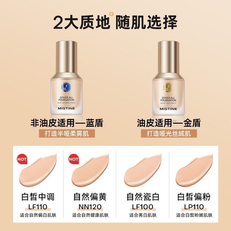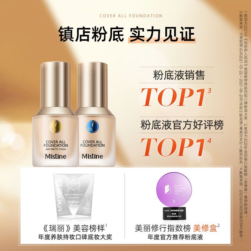 商品名称:泰国蜜丝婷Mistine小蓝盾粉底液防水防汗不脱妆控油遮瑕持久养肤