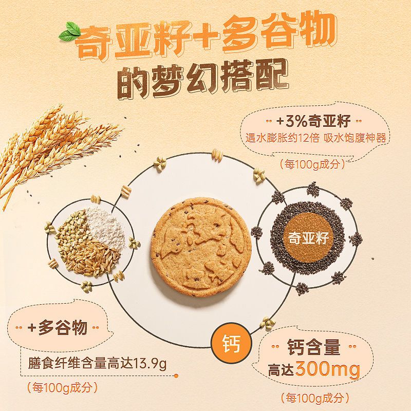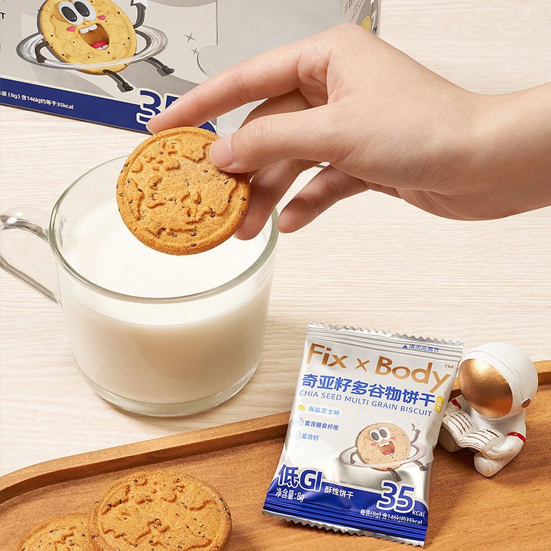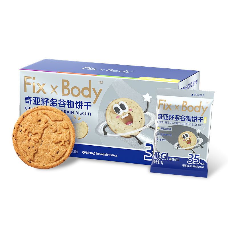 商品名称:旺旺FixXBody 低GI 奇亚籽多谷物膳食纤维芝士味饼干盒装早餐零食