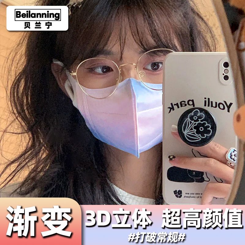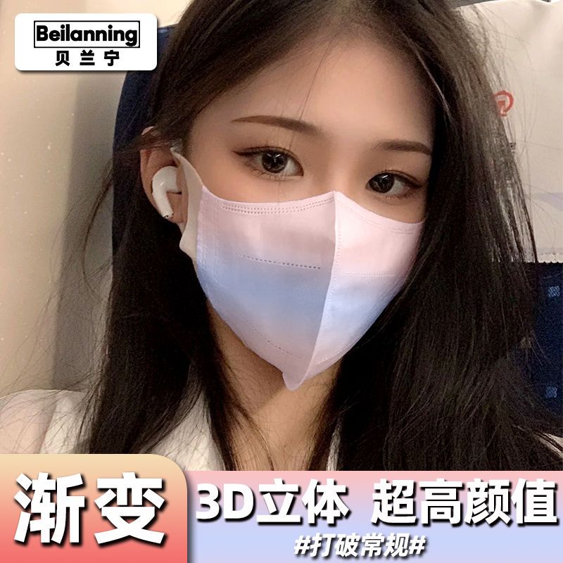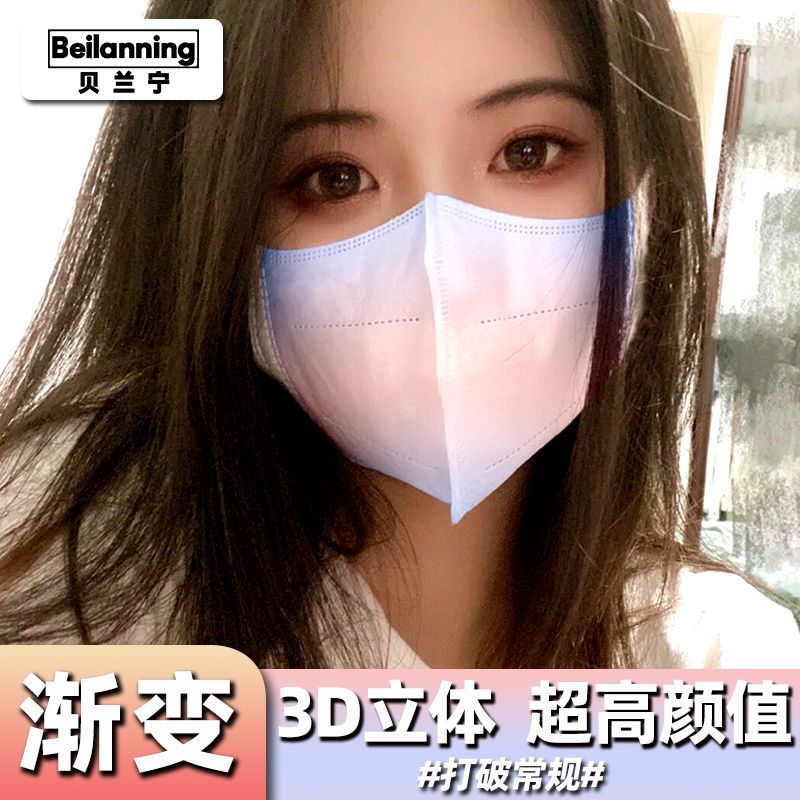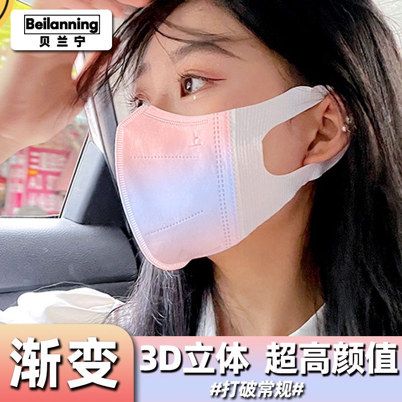 商品名称:贝兰宁渐变色口罩3d立体高颜值一次性三层防护透气彩虹色同款口罩