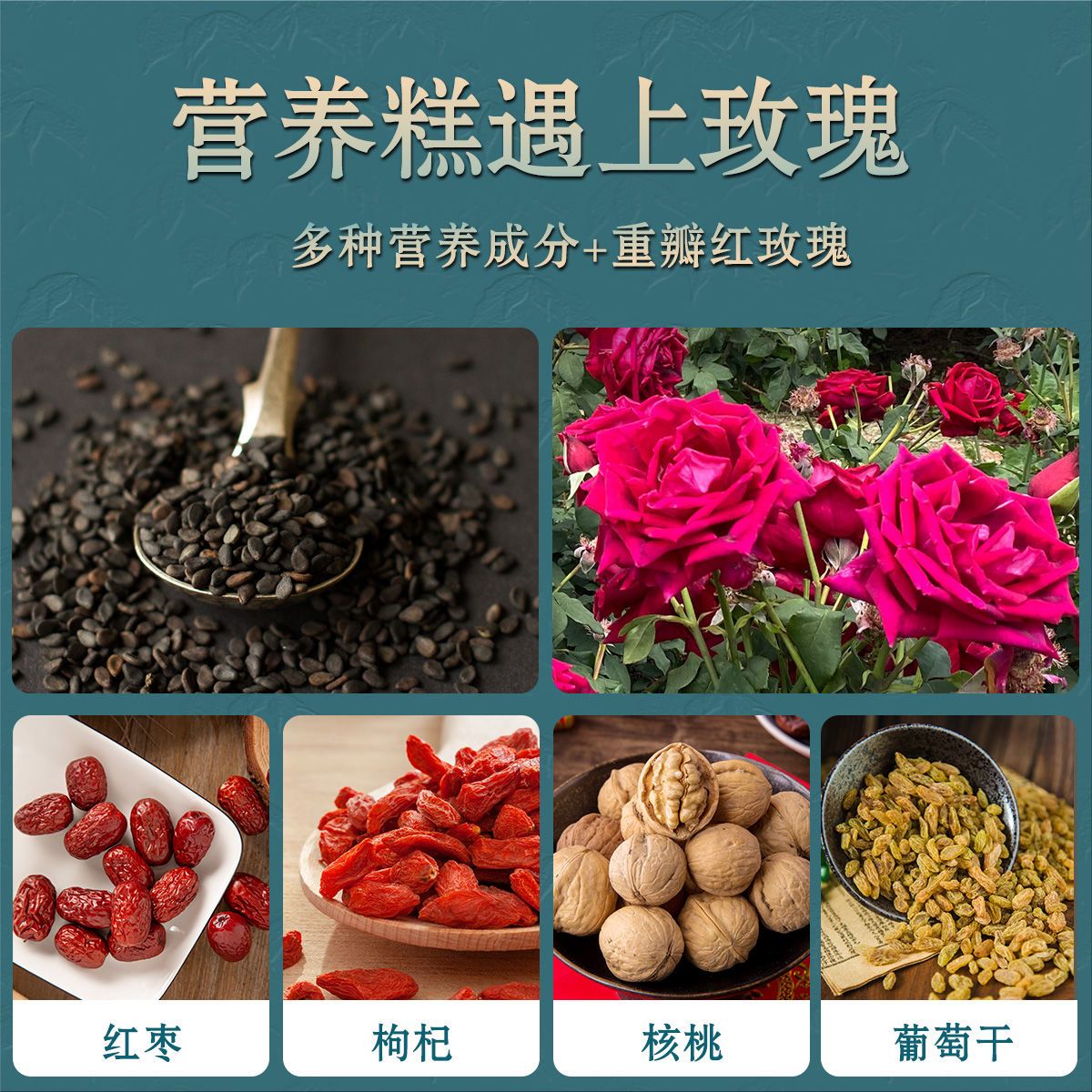 商品名称:黑芝麻核桃糕红枣枸杞软糕孕妇健康纯手工切糕零食独立包装营养糕