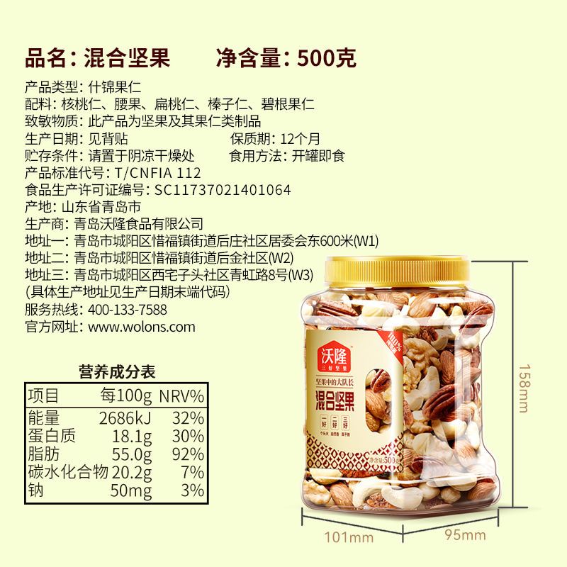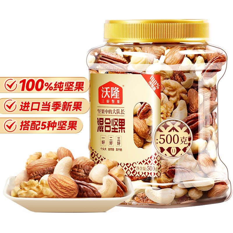 商品名称:沃隆混合坚果仁500g*1罐每日坚果纯干果营养健康零食山姆罐