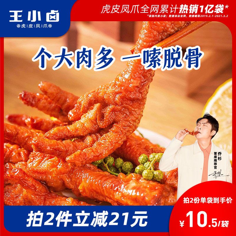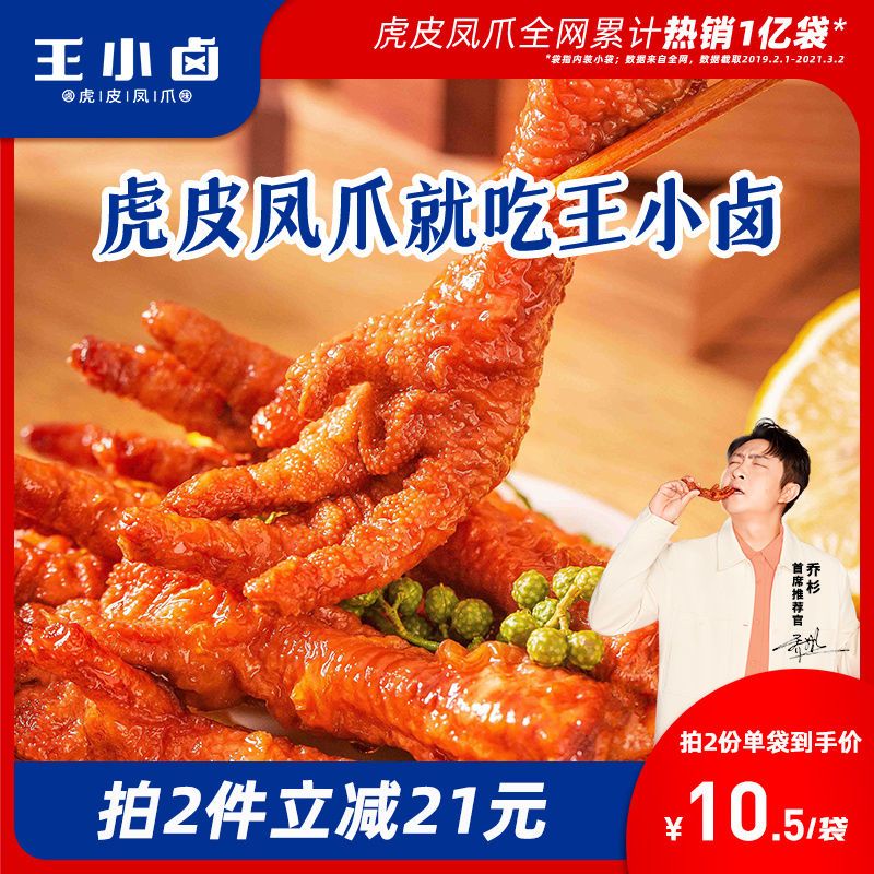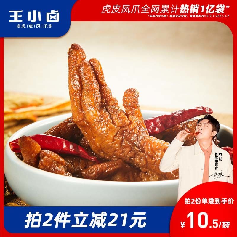 商品名称:王小卤虎皮凤爪105g*3女生网红休闲零食品宿舍小吃肉类解馋鸡爪子