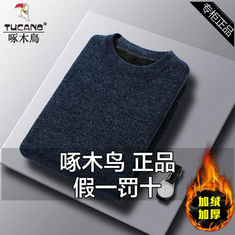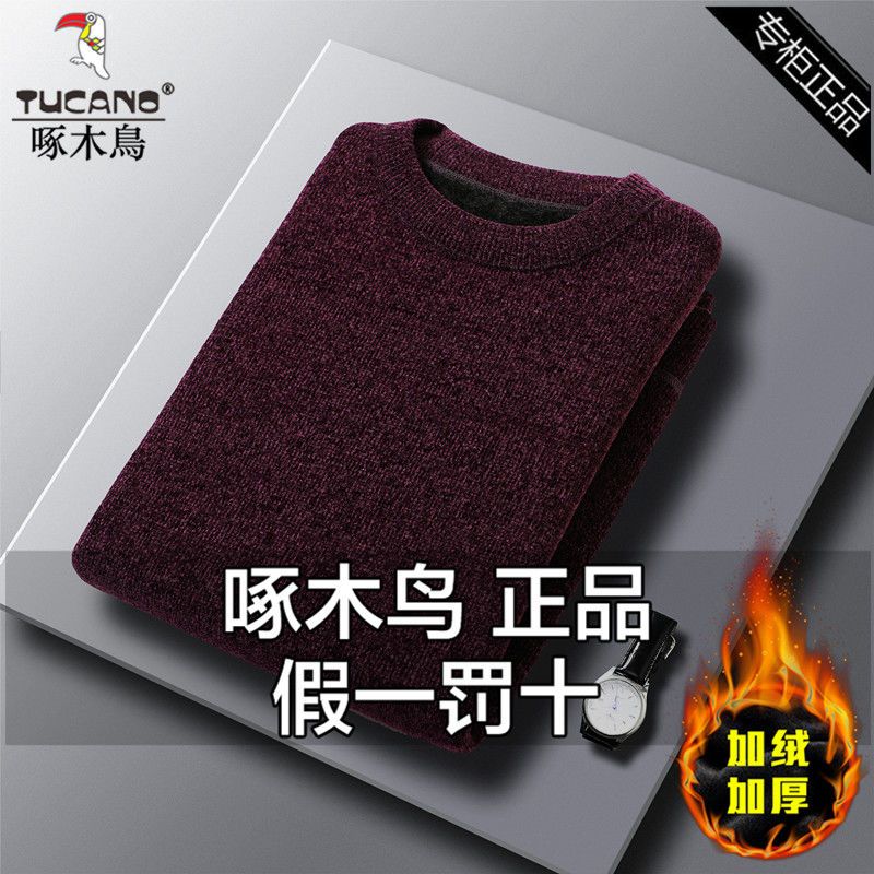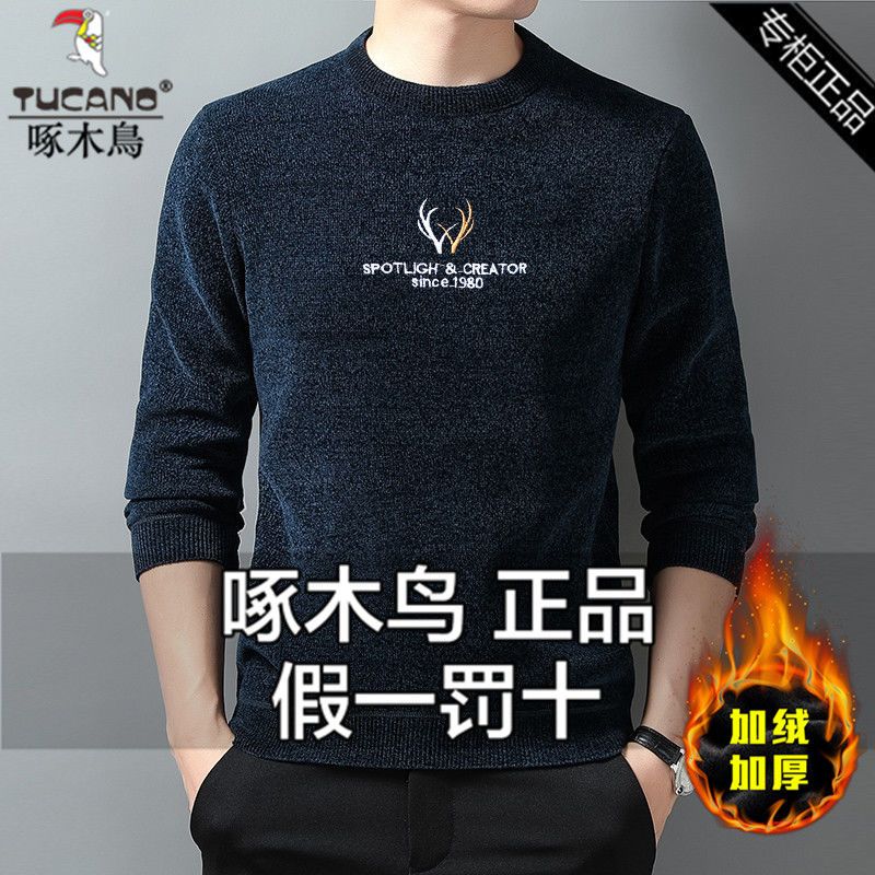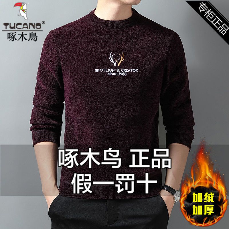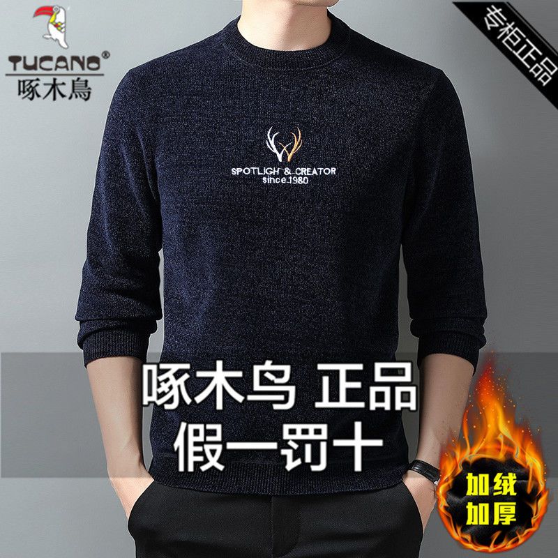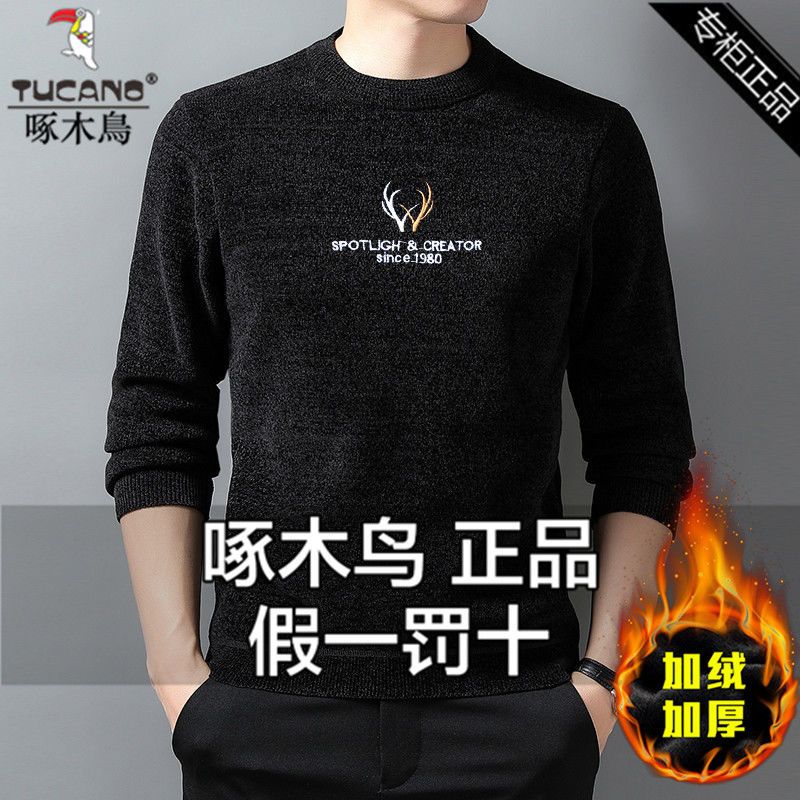 商品名称:【加绒加厚】啄木鸟秋冬季男士雪尼尔圆领毛衣针织衫休闲打底衫潮