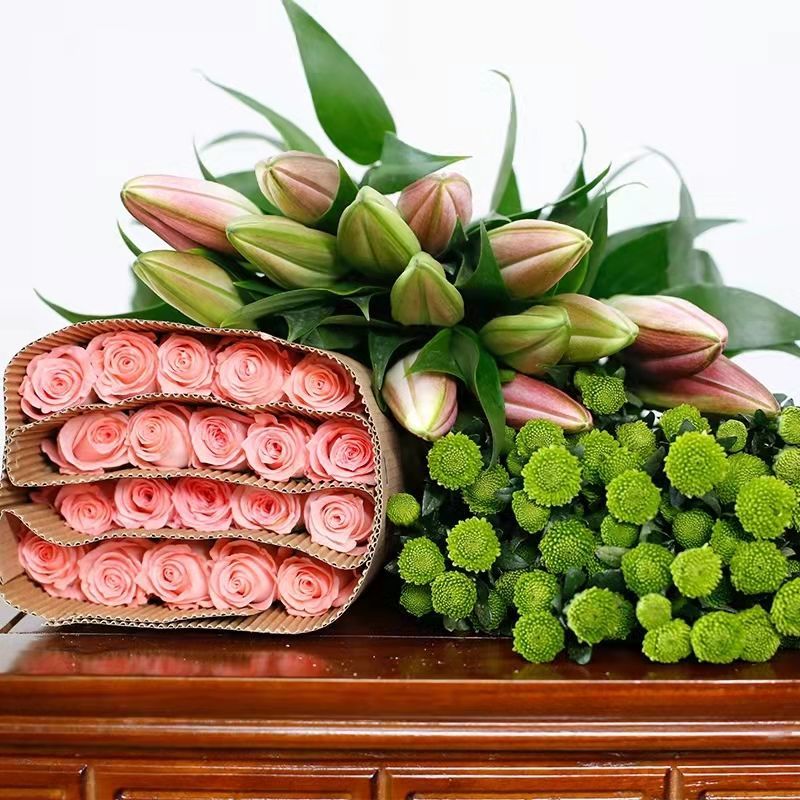 商品名称:云南鲜花基地直发香水百合特价花批发清仓多头花边套盒特级玫瑰