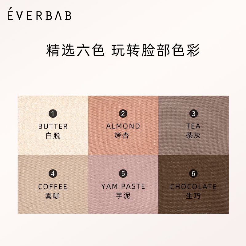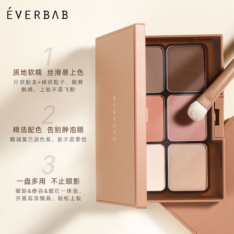 商品名称:EVERBAB素哑六色眼影盘哑光大地色便携彩妆腮红高光修容一体盘女