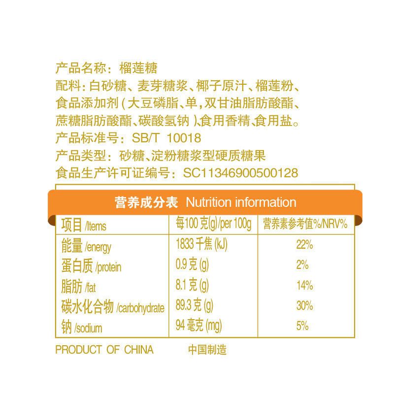商品名称:春光食品榴莲糖180g*3袋正宗海南特产硬糖休闲零食水果糖年货糖果