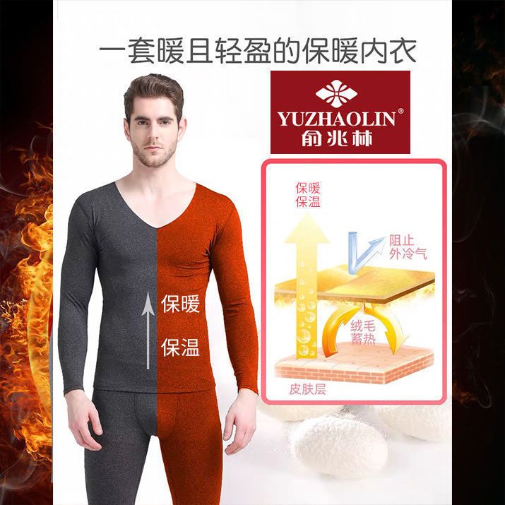 商品名称:俞兆林双面磨毛37锁温男士无痕保暖内衣套装秋冬加绒V领秋衣秋裤